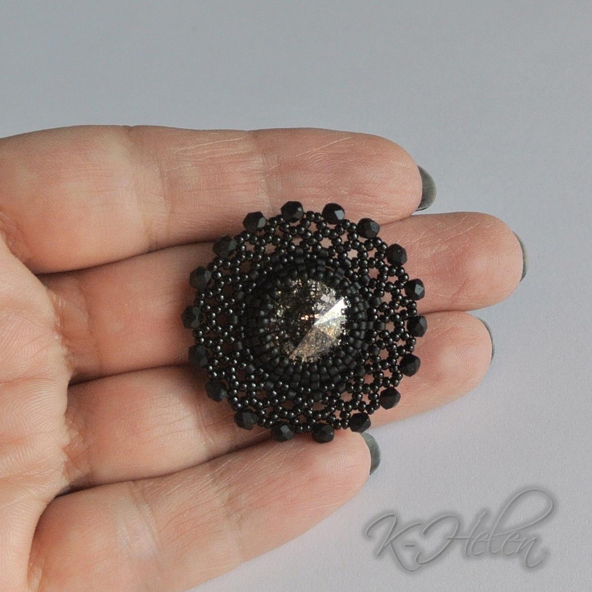 Затем другая брошь, поменьше. Здесь я закончила плетение раньше и вплела по краю бусинки.