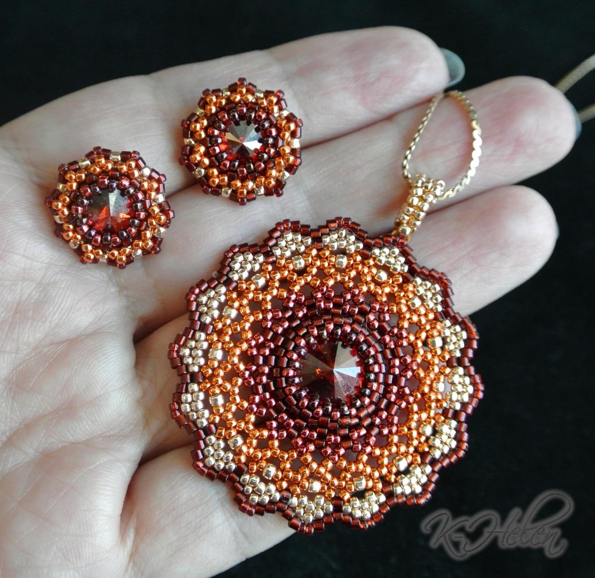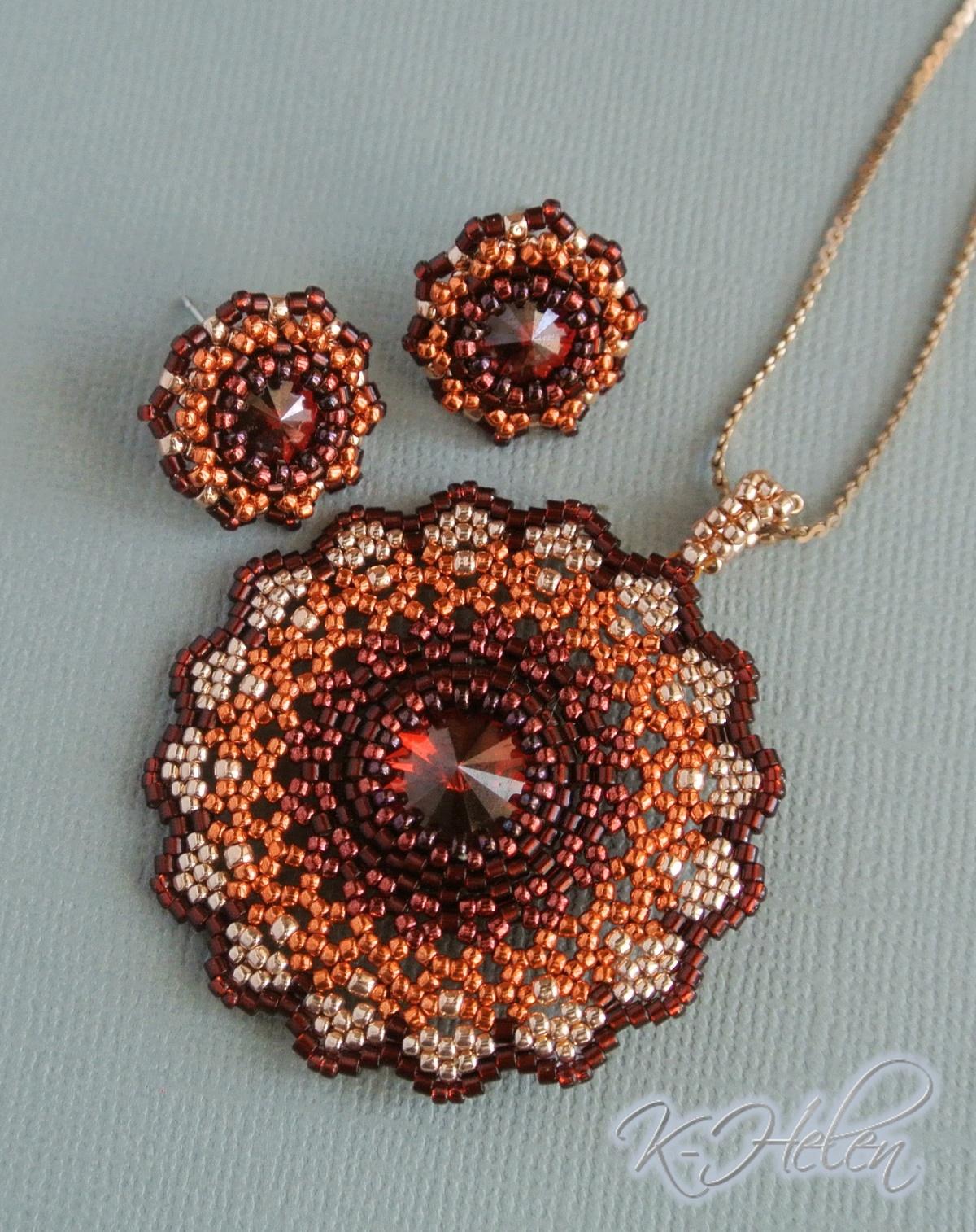 Ну, и, наконец, комплект из кулона и сережек. Здесь для кулона я взяла риволи 12 мм.