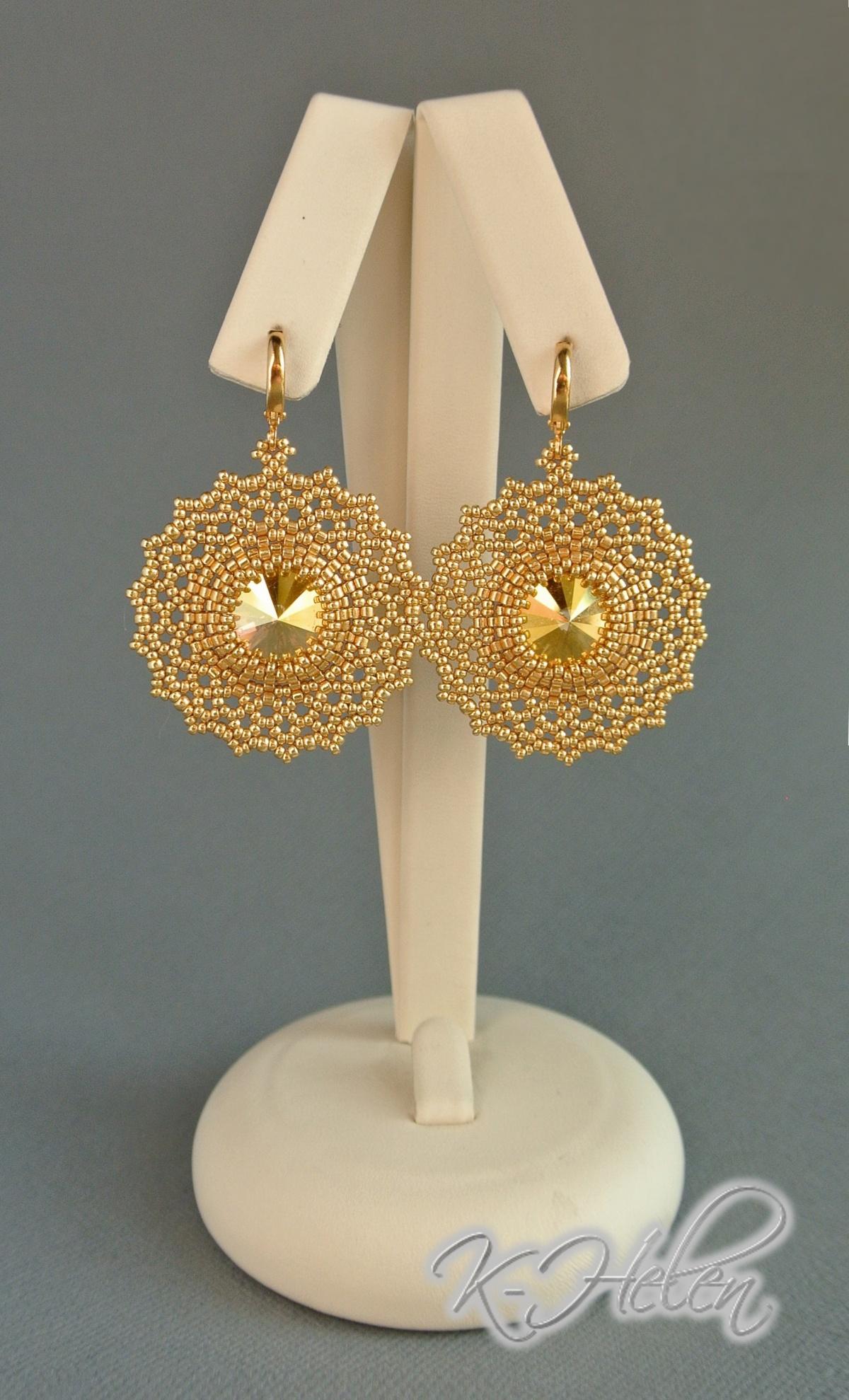 И моё личное наблюдение: чтобы плетение не коробилось, для риволи 14 мм надо брать пятнашку Миюки, а для 12 мм — пятнашку Тохо.