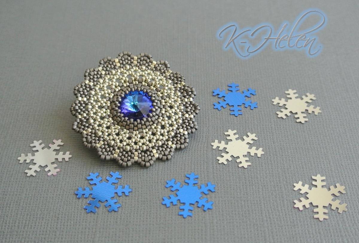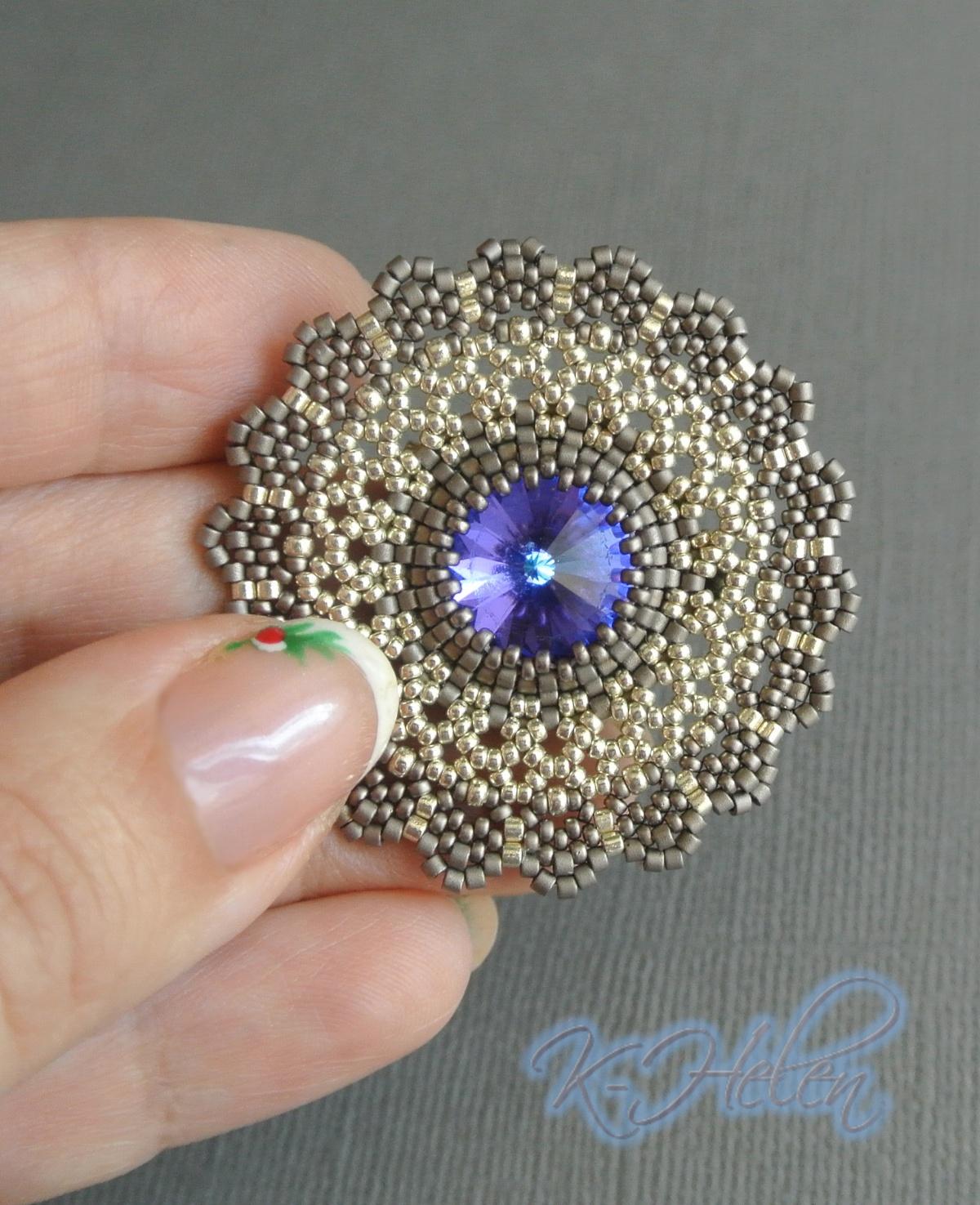 Первой была брошь. Она сплетена почти полностью по МК, за исключением последнего ряда зубчиков.