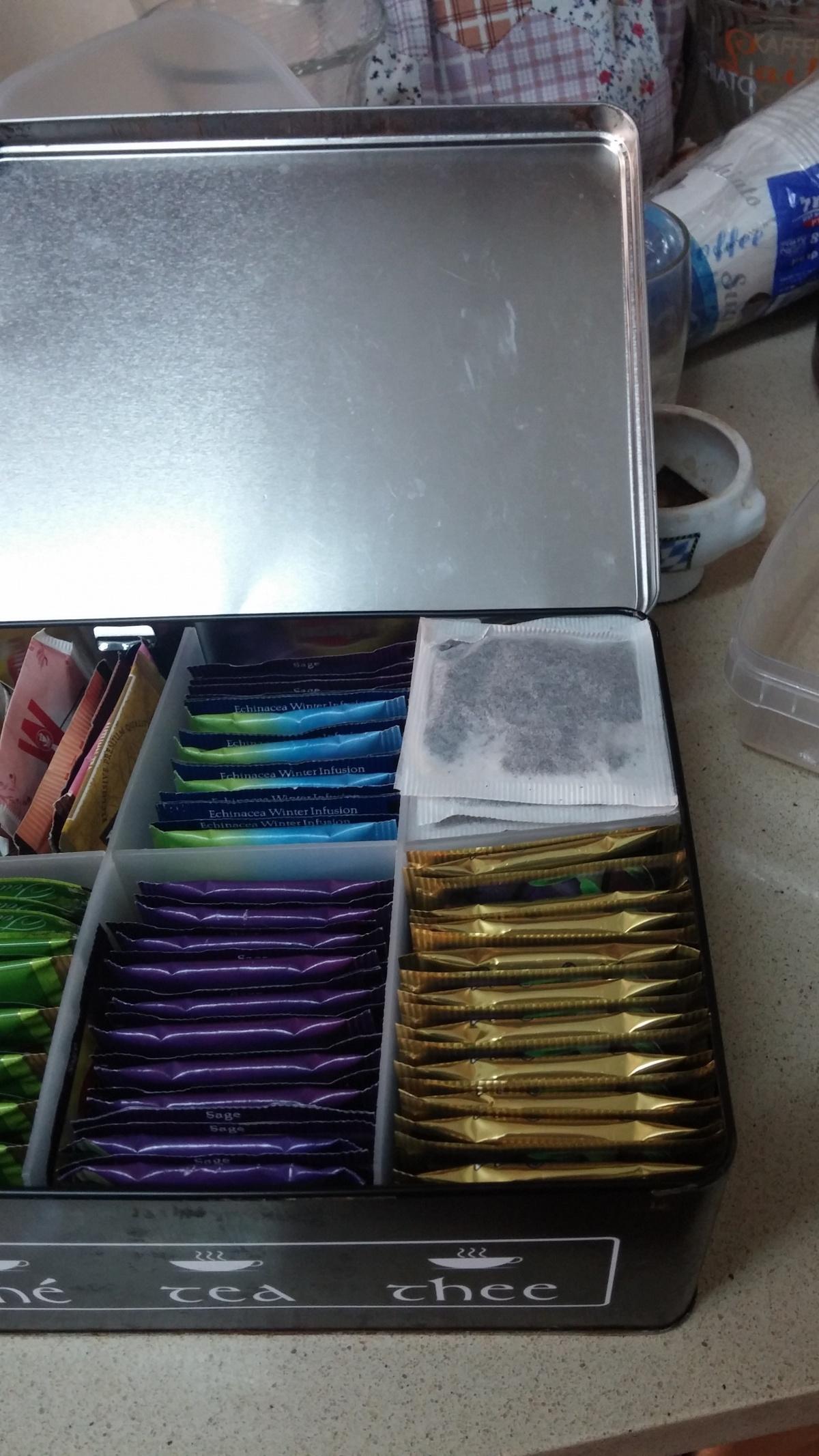 Я вспомнила, что я пересыпаю всегда! Чай! Я не признаю дома пакетики, только свежезаваренный. Это, наверное, единственное, что я делаю на кухне более-менее правильно. Более — потому что всегда свежезаваренный, менее — потому что не в чайнике и не весь объем сразу, а в кружке с ситом и потом разбавляю кипятком.
