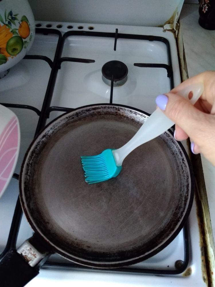 Все. Тесто готово. Приступаем к выпеканию. Я рекомендую выпекать на блинной сковородке. Перед выпеканием смажьте сковородку маслом. Я использую кисточку.