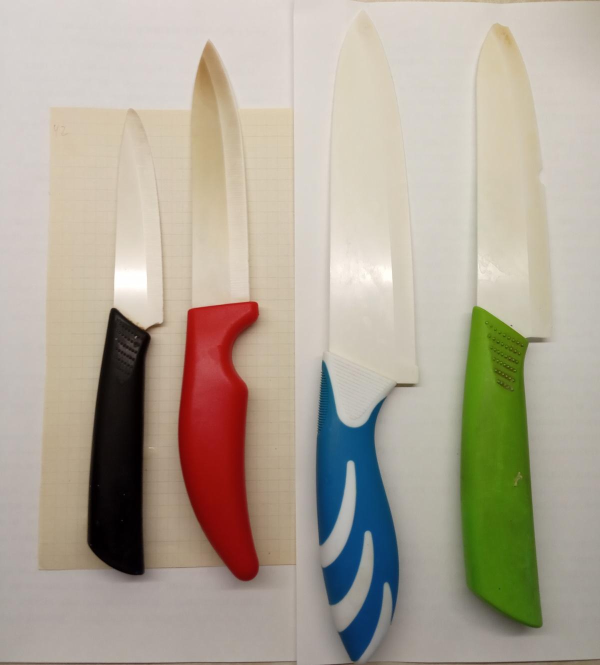 Мои инструменты (вид, правда, не товарный): маленький — длина 20 см (для всего), тем, что с красной ручкой — крошу овощи, с синей — режу хлеб и овощи в заготовки, с зеленой — ножик «на пенсии».