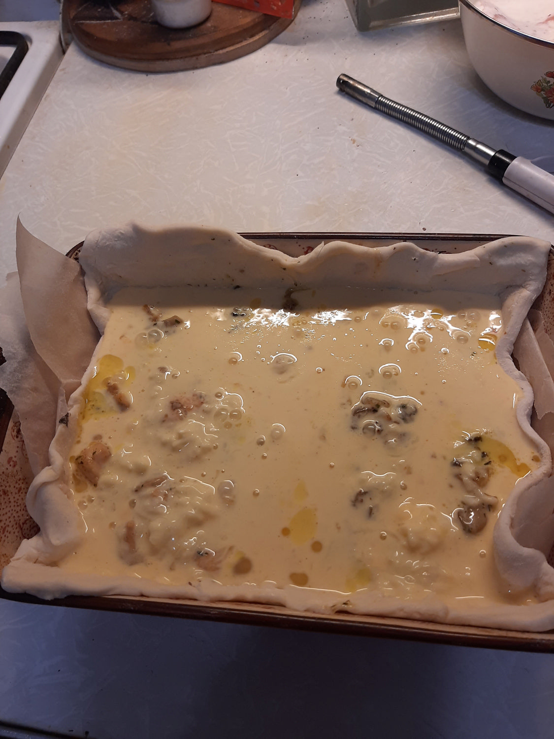 заливка-3 яйца, тертый сыр, сливки 20%, приправы