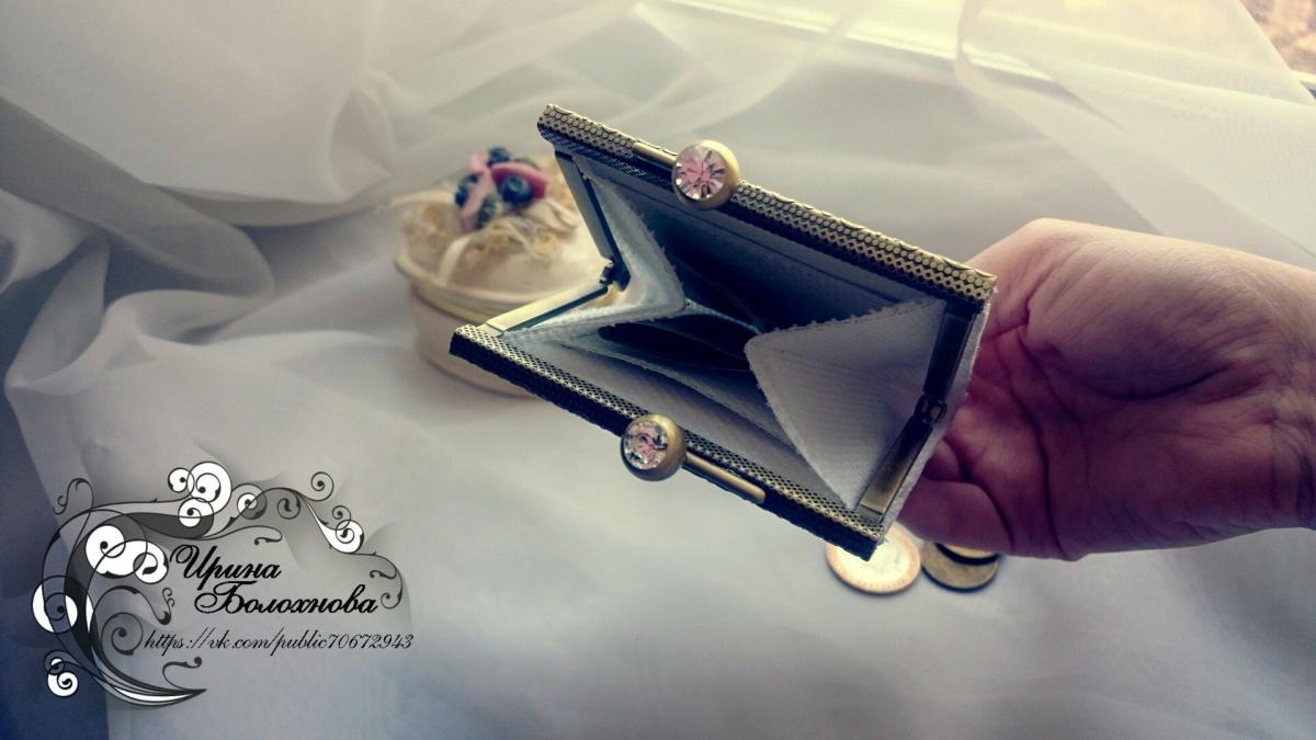 Купила я как то по ошибке для очечника фермуар — рамку. Долго лежал, пока не увидела сдесь мастер класс @yarina с такими фермуарами. И вот такой результат получился. Маленький кошелечик))) конечно без косяков не обошлось((