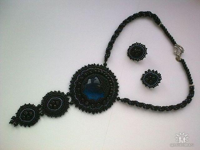 Мое первое вышитое украшение, сделано в апреле 2009 года, тогда я еще и оплетать то не особо умела, а о вышивке даже думала с придыханием, кто в теме, помнит, тогда вышитые украшения в основном были на БИ у Неллы Москвичевой. Я мужа забадывала: — «Посмотри какая красота! Посмотри как люди умеют! я так никооогда не смогу», он долго терпел, смотрел, а потом и выдал, да что тут особенного, возьми да и сделай, все у тебя получится!.. и я сделала
