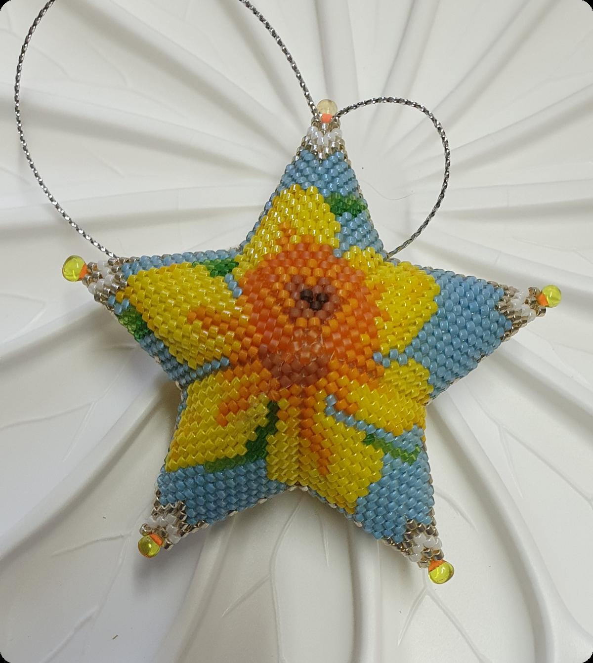 Решила я к цветочному флешмобу приурочить звезды из серии «Цветочный Деликатес». Июнь уже прошел, а я всё собираюсь… Хотела до поездки на море выставить работы, но закрутилась — сборы, готовка, суета… Вот только вернулась, теперь срочно нужно загрузить свои звездочки. Сегодня покажу королеву-Розу и Нарцисс. Схемы Татьяны Акиндеевой.