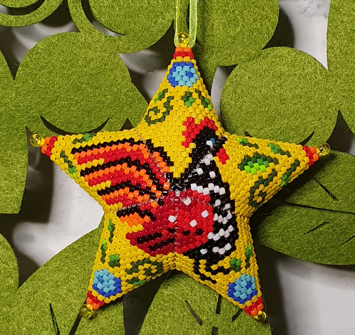 По схеме Татьяны Акиндеевой сплела вот такого петушка к флешмобу. Эта схема из серии народных промыслов, по мотивам городецкой росписи. Получилось сочно, ярко, по-летнему жарко.