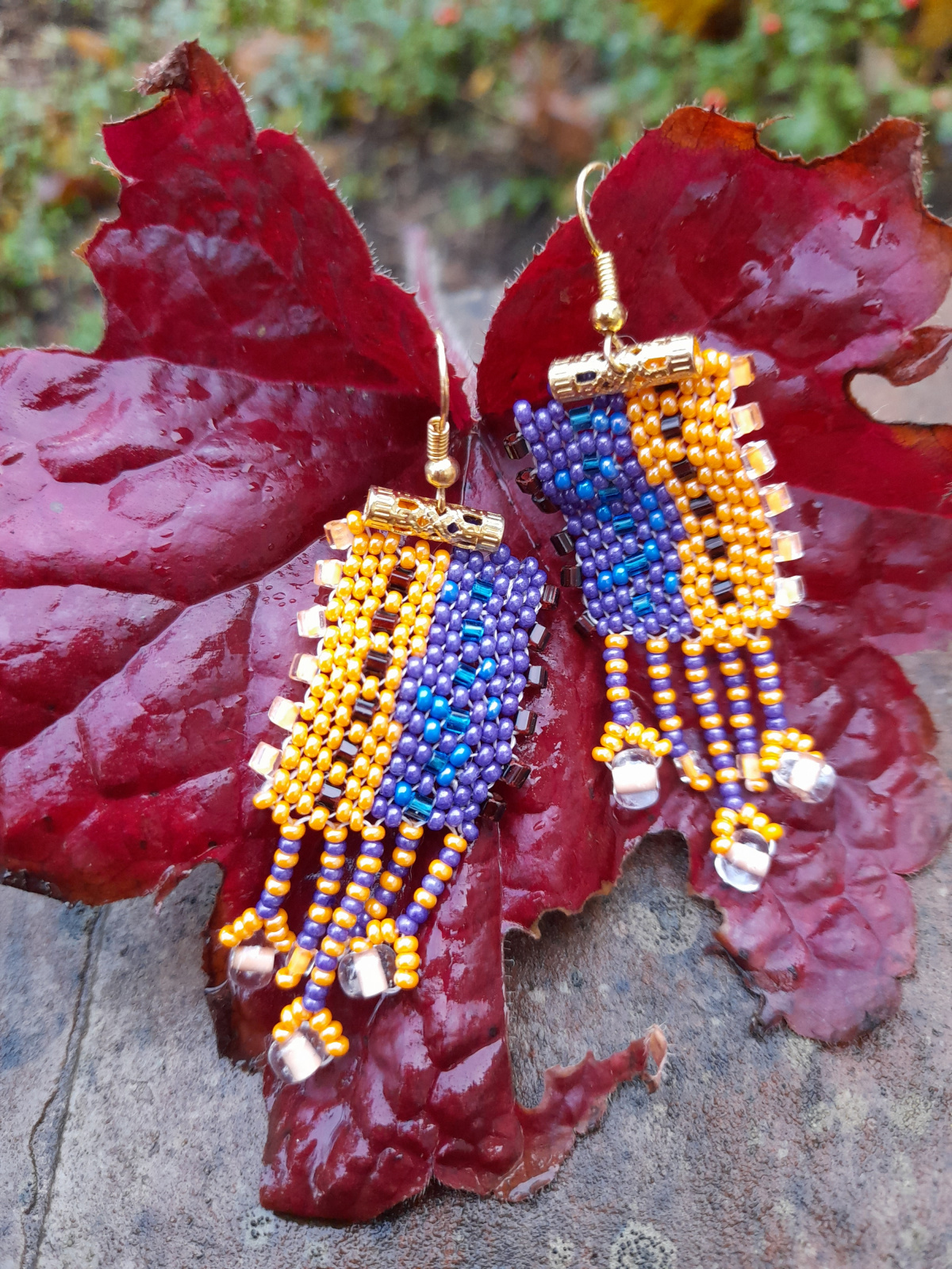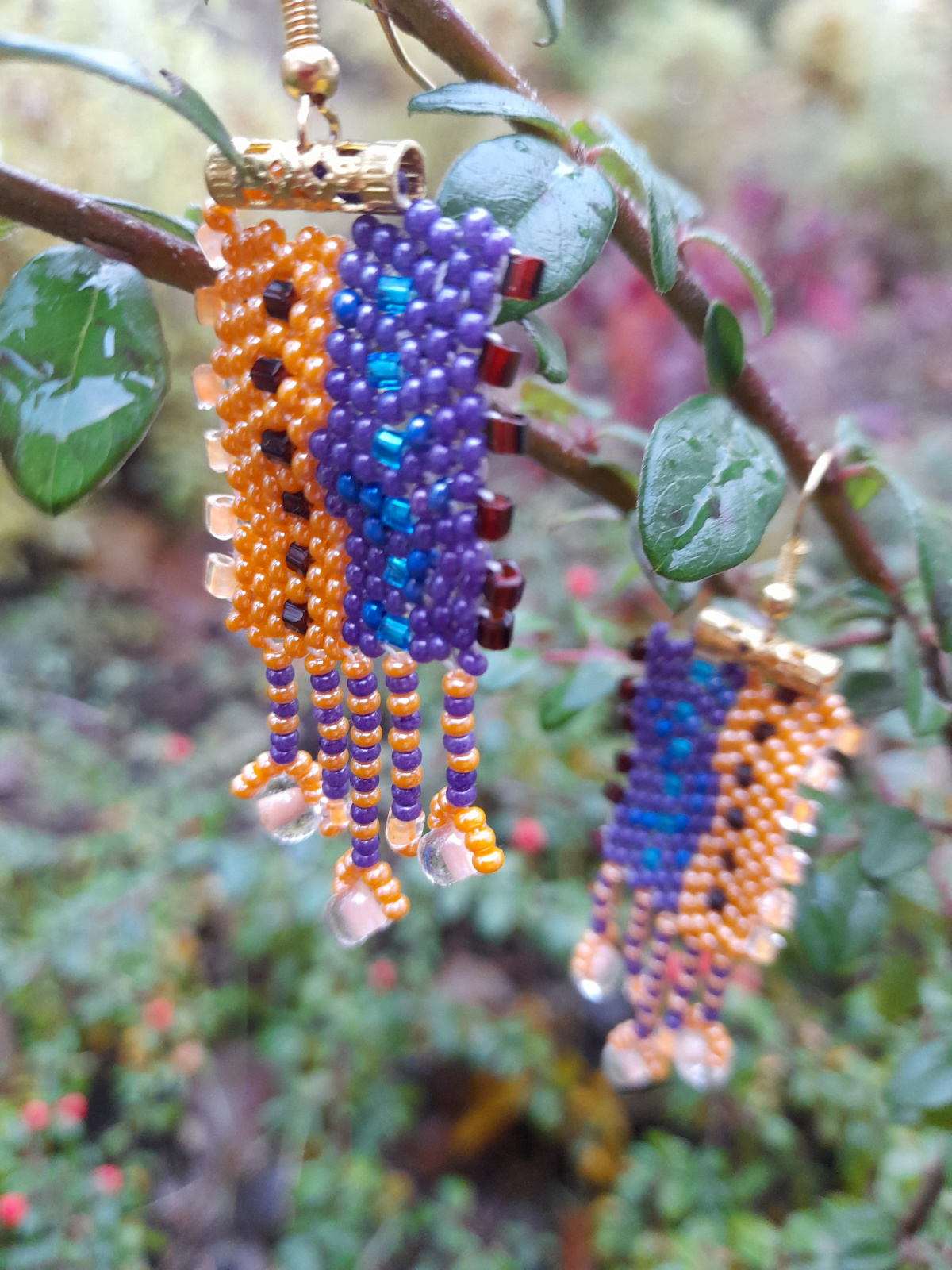 можно дать совет? по своему вкусу у вас подвески на сережках, в которых чередуется бисер двух цветов попробуйте не чередовать бисер, а набирать полосками разной ширины (просто попробуйте)