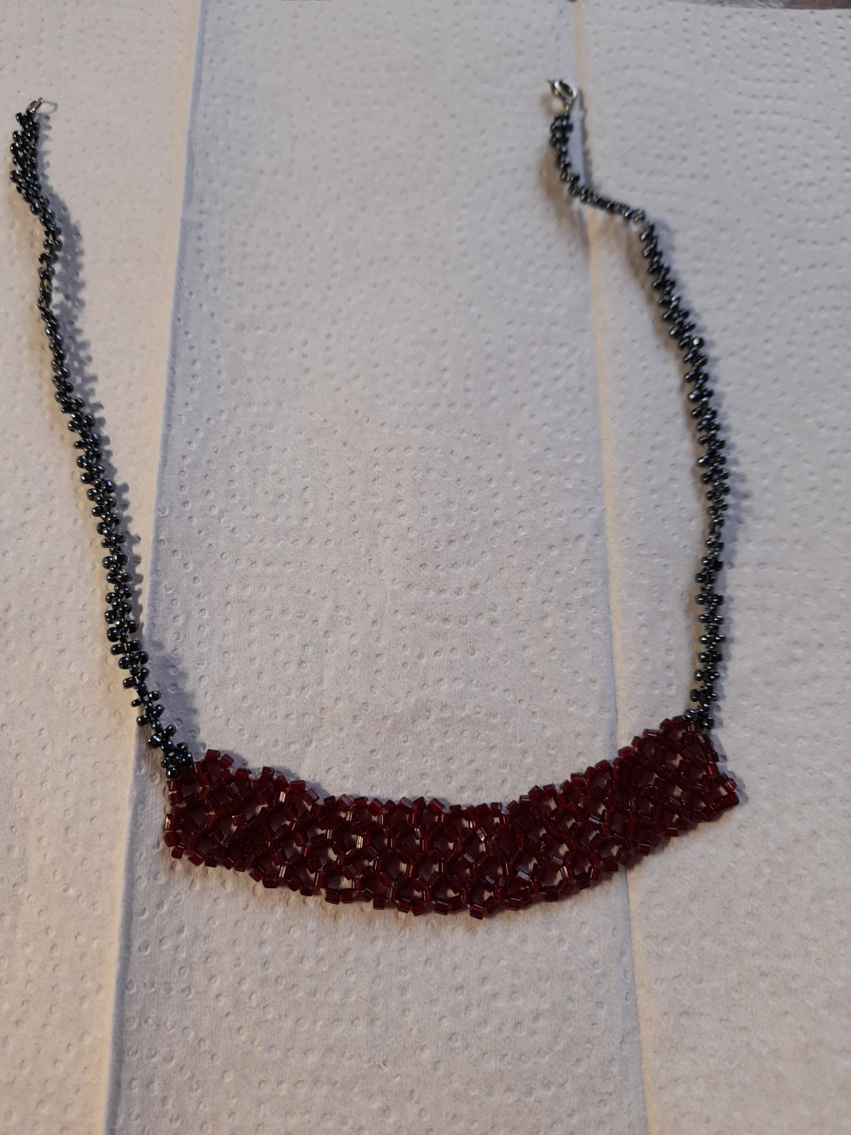 На заре своего бисерного увлечения сделала вот такую кольешку и убрала ее в шкатулку.Время от времени ее доставала и с грустью укладывала назад.В конце концов мне это надоело и я решила ее переделать с рубкой более темного оттенка.Поскольку цвет рубки мне нравится.
