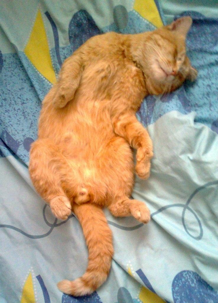 Ну вот… Шла я себе вчера вечером с работы, никого не трогала, зашла в магазин. А там под ногами у покупателей вот такое серое чучелко-мяучелко болтается. Покупатели её шпыняют — ни няшности, ни умильности в ней нет. Обыкновенная Мурка. Жалко мне её стала, погладила, сосиску дала. А продавщицы и говорят: «Да возьми ты её себе, третий день тут болтается.» Посмотрела я на неё — точно, такую никто не возьмёт, нет в ней привлекательности. Подумала и взяла. Живу в сталинском доме (старый, 57 года постройки ), этаж первый, мыши задолбали, кот, стервец рыжий, где-то шляется неделями, плевать ему на мышей. Домой вот в таком состоянии приходит — драный и уставший. Вот он, мой стервец рыжий, Кузькой зовут…