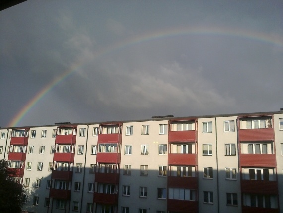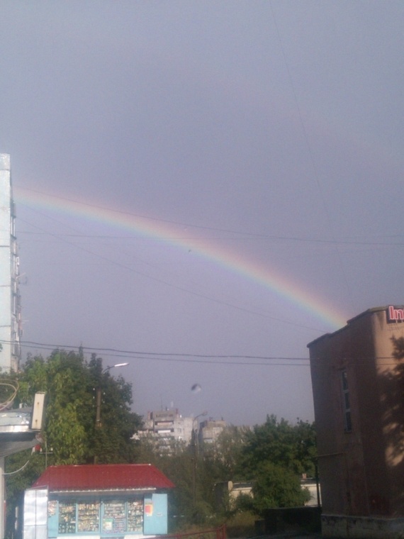 А наша радуга в слепой реденький дождик возникла)) Я даже фотоаппарат особо от него не прятала)