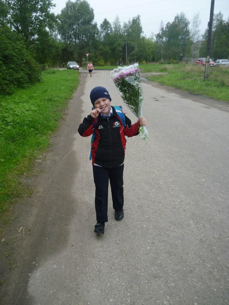 А вот так с чупа-чупсом в зубах и с букетом наперевес мы шагали в школу первый раз )))