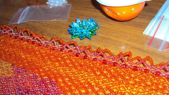 А проблемный у меня зеленый. Я зеленый очень люблю как цвет, в природе, одежде, в интерьере. А вот задумаю что-нибудь зеленое из бисера сплести, разложу бисер, сделаю эскиз, придумаю схему и… сплету из синего