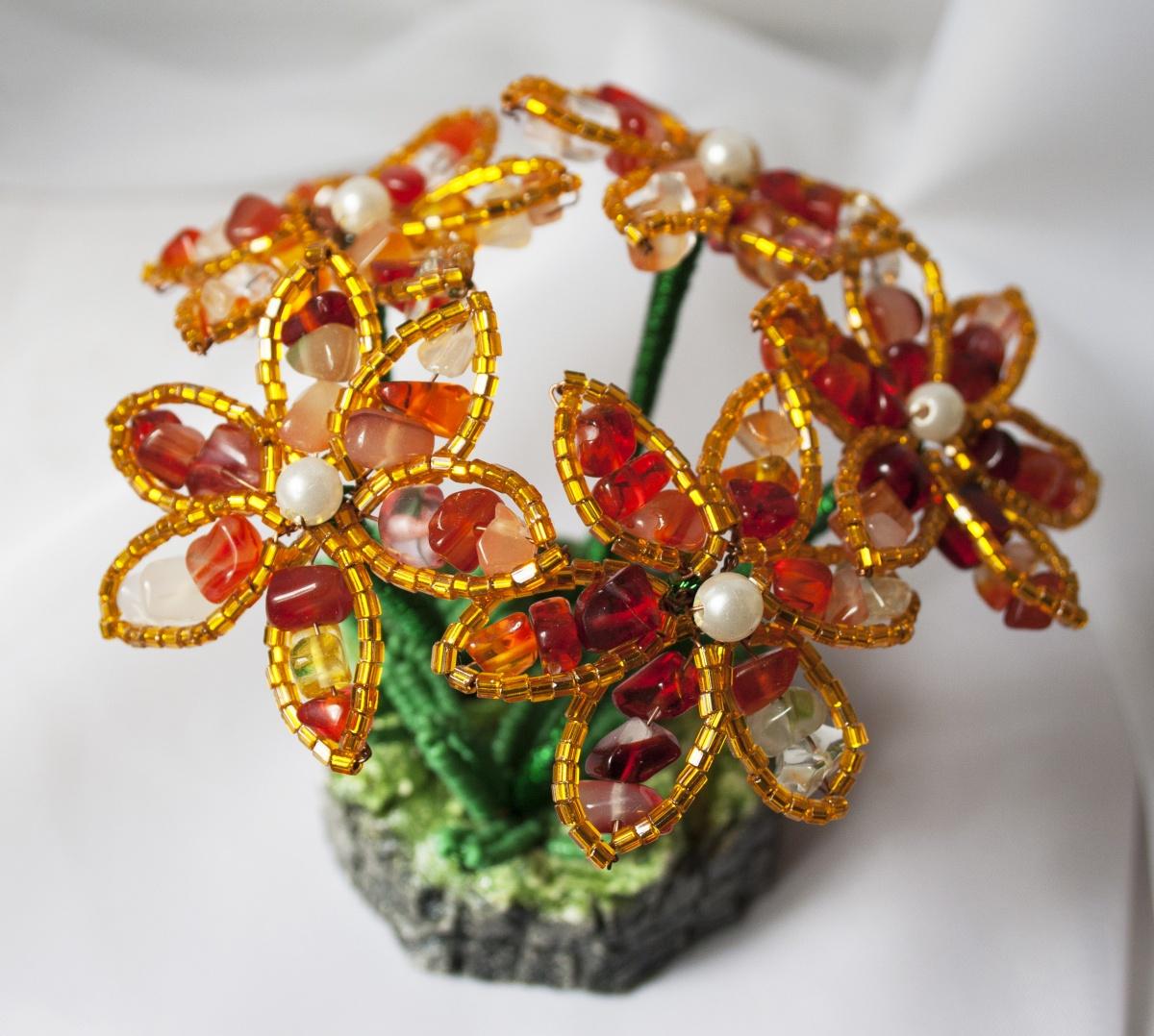 Букетик сердоликовых цветов, и набор бусинок сердолика для моего любимого кирпичного плетения!!!