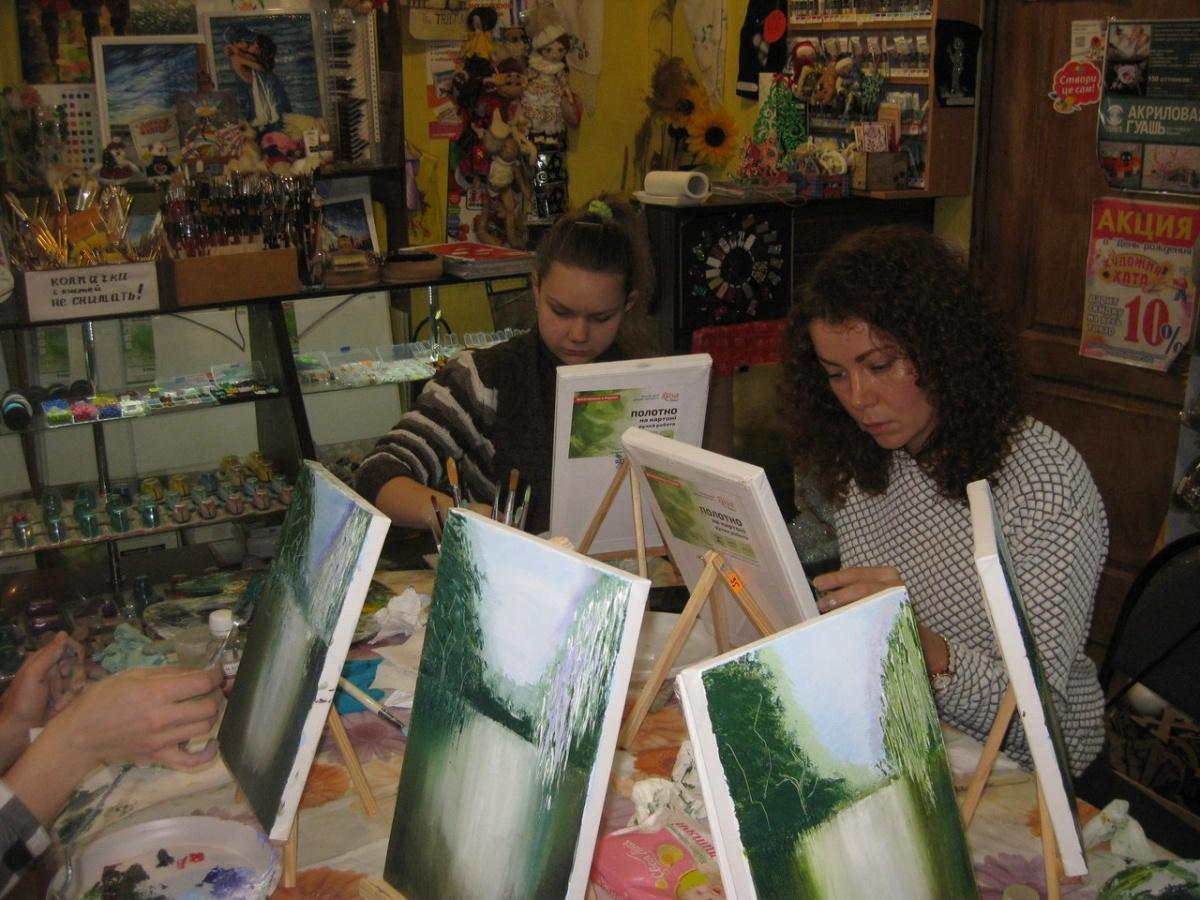 Девочки это просто какое-то чудо, это сказка, я писала шесть часов, но не могла оторваться даже чаю попить… Писали мастихином, я даже в руках его не держала в жизни!!! Это непередаваемо!!! Краски — это восхитительно!!! А сегодня выложили фото с МК, вот они