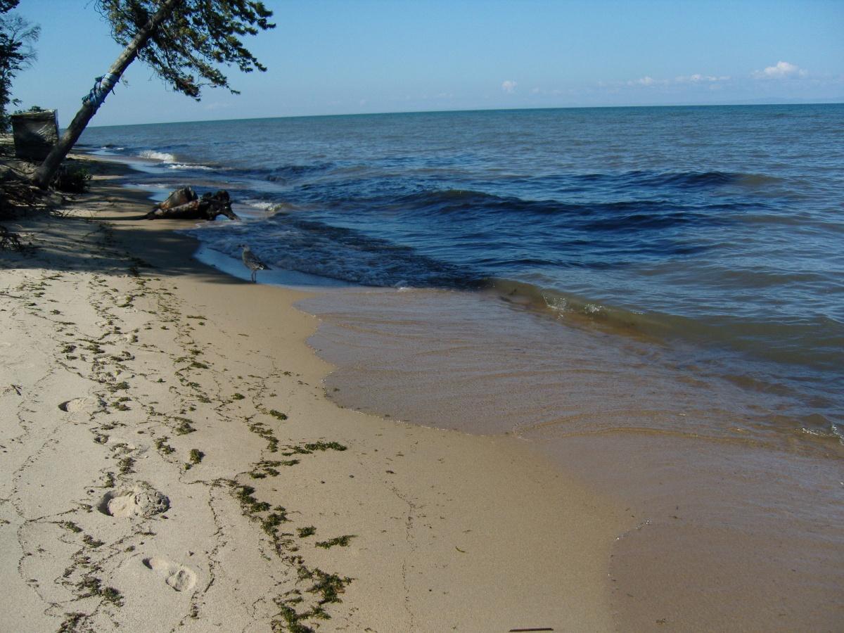 А это соседний слева залив Мандархан, где очень мелко и поэтому очень тёплая вода, до +26 прогревается.Но я была просто шокирована, увидев обмелевший берег, заросший осокой… Вот так было в 2013, когда уровень Байкала ещё не упал (потом несколько лет без дождей, и это повлияло на резкое обмеление залива)