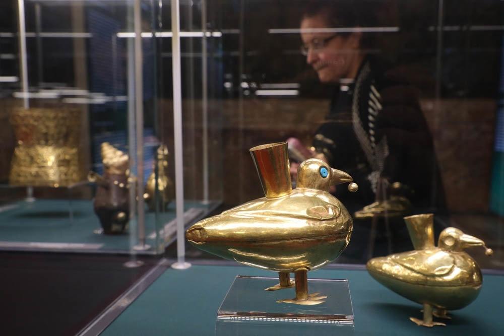 Общее впечатление — на 4. Да интересно и познавательно. Но просто и примитивно. Не литье. Золотая фольга средней толщины. Чеканка и давление. Интересными для меня оказались глиняные сосуды, музыкальные инструменты ну и украшения в нос(кольцо в ноздри). Самым примечательным в этих украшениях было пожалуй их размеры, они были такие, что закрывали рот. Из чего можно было сделать вывод, что «губазакатывательных машинок» в древнем Перу не было. Поэтому — «кольцо в нос и не раскатывай губы»