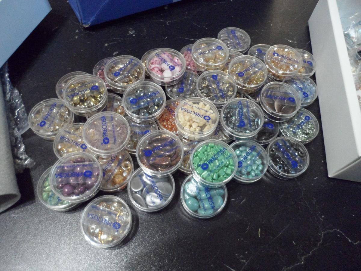А вот дальше оказался «сюприз». Уж не знаю ктоэтот распиздяй в этом виноват, упаковщик на Прицеозе или наша родимая почта, но в белой симпатичной коробочке оказалась масса небольших баночек с разнообразными бусинами( соответственно буклетам), только вот половина этих коробочек оказалась открытой и их содержимое благополучно перемешалось.