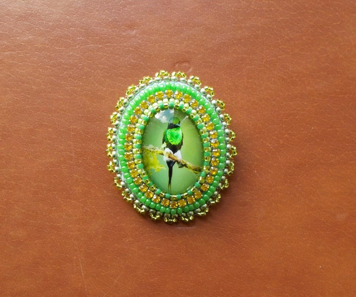 Брошка с птичкой. Зеленый.