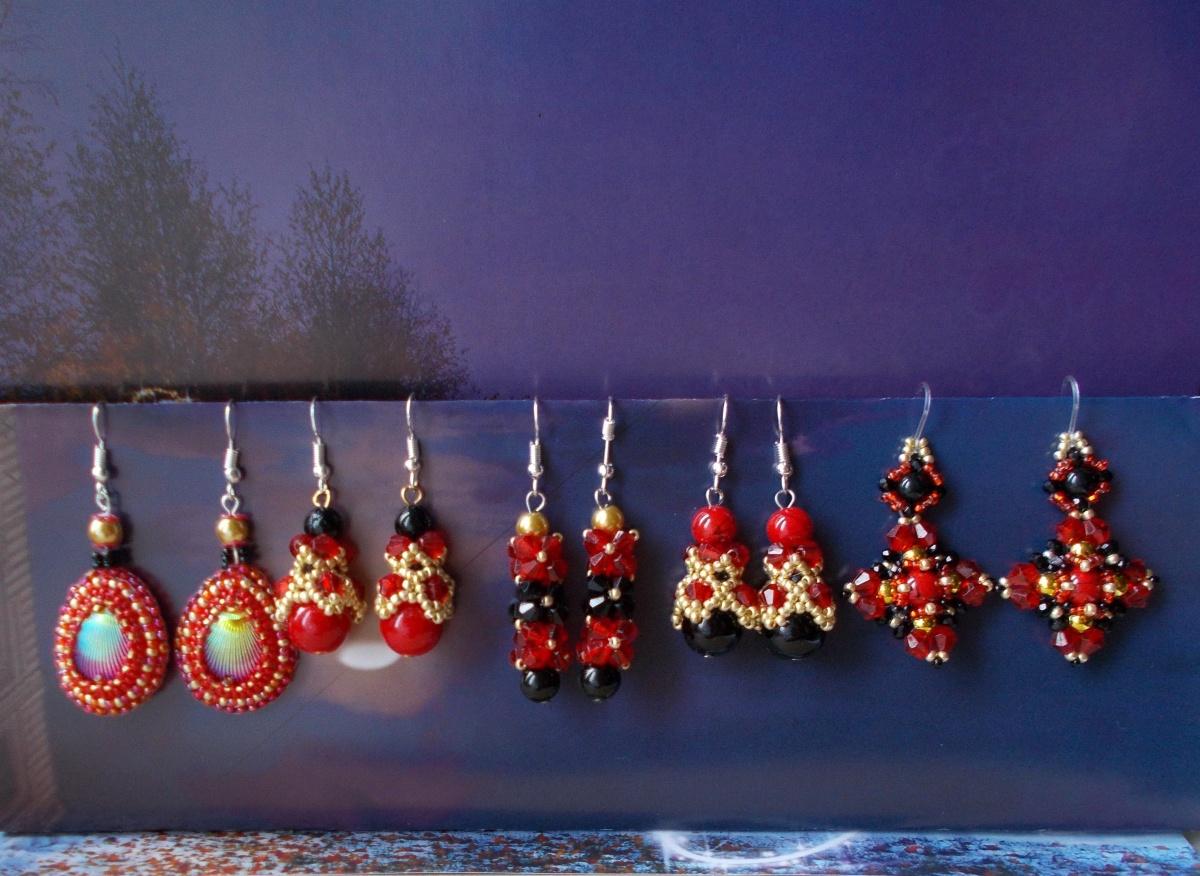 Серьги алые к кулонам с кисточками. Много. Фото тоже много.