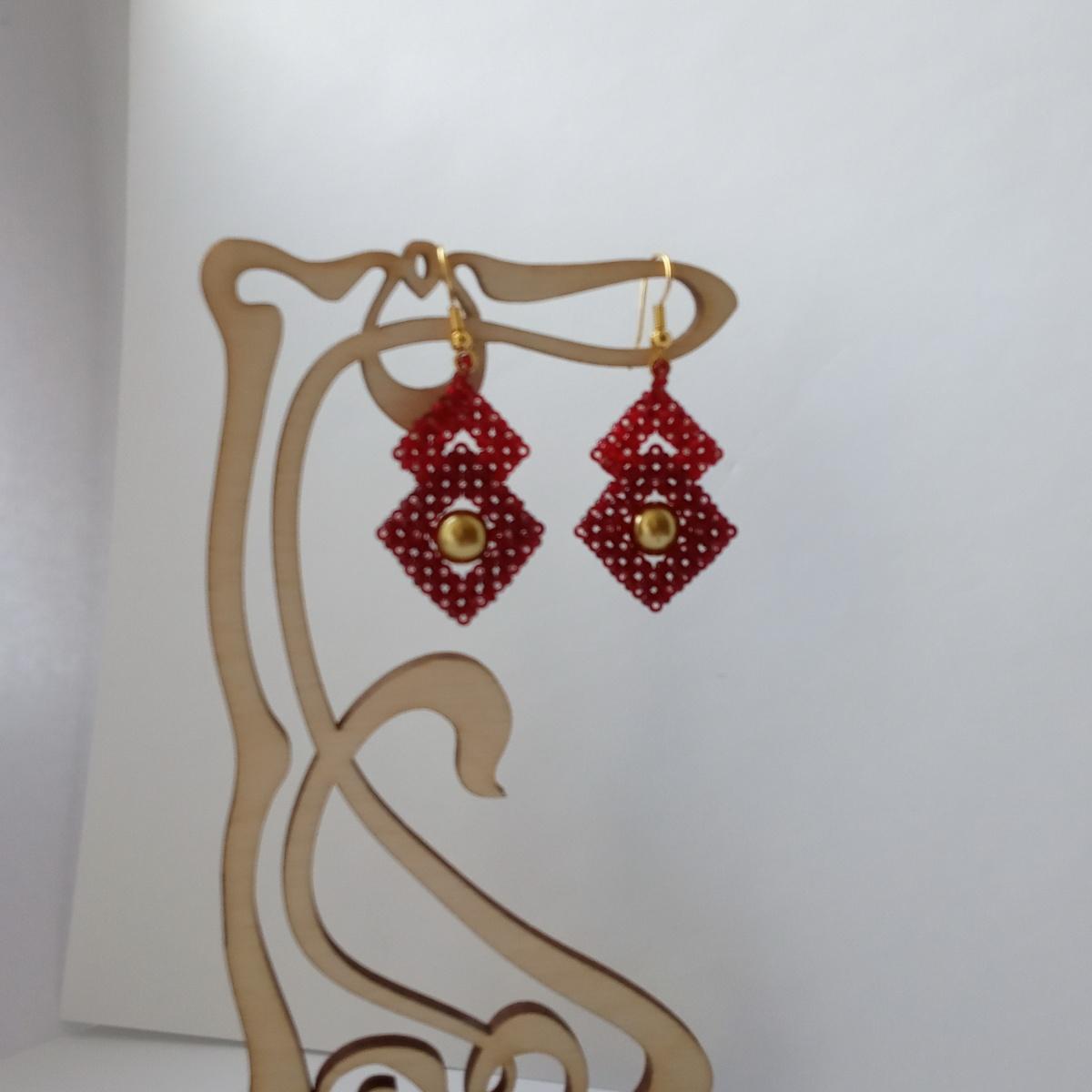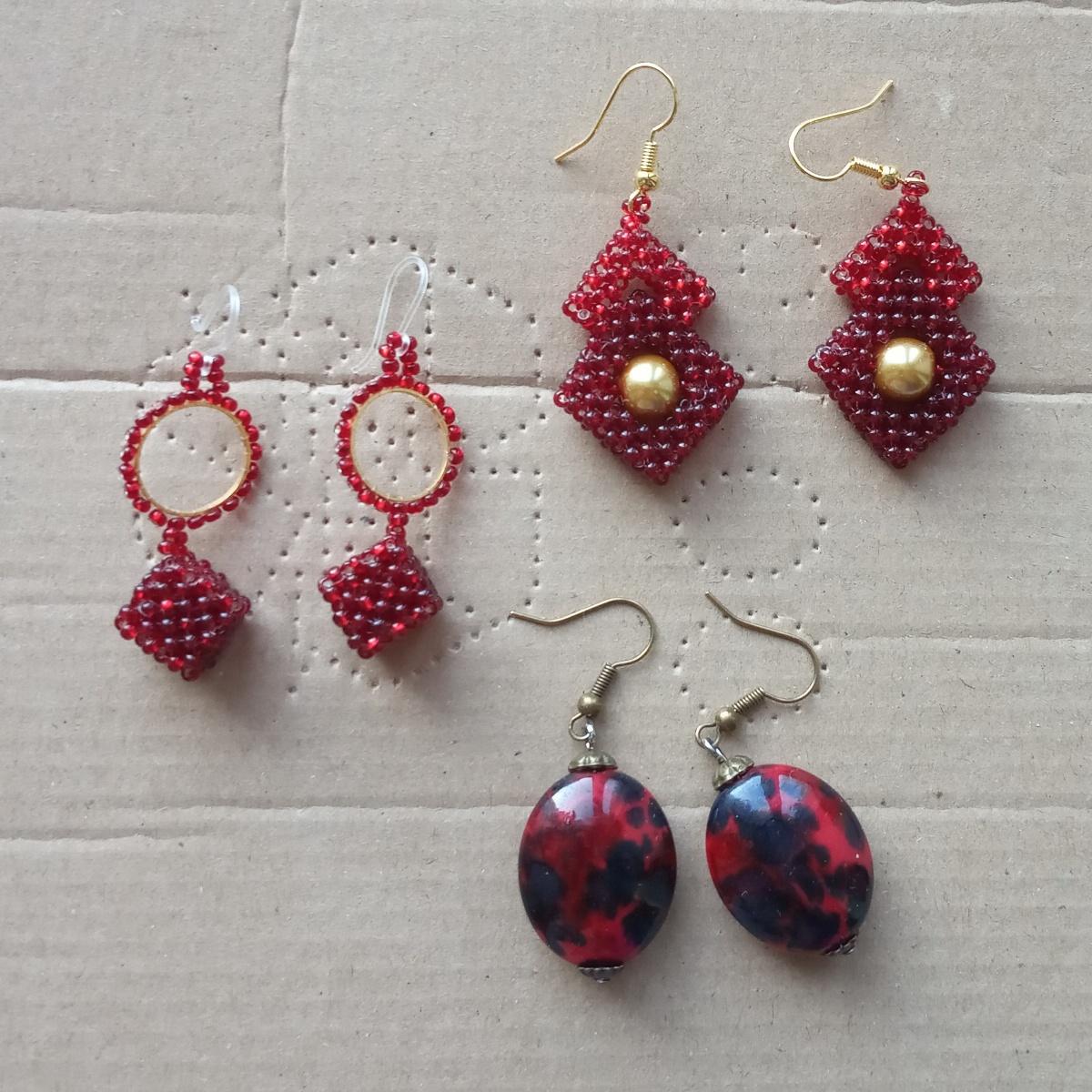 Какие хорошенькие сережки! И нарядные Кирпичик освоили, гляжу — правда, классная техника, да? Вон как на колечках чудесно живет оплетка Красные бусины тоже понравились. Отдельное спасибо за пост о пластиковых швензах — надо будет всерьез озадачиться добычей таких и подобных.