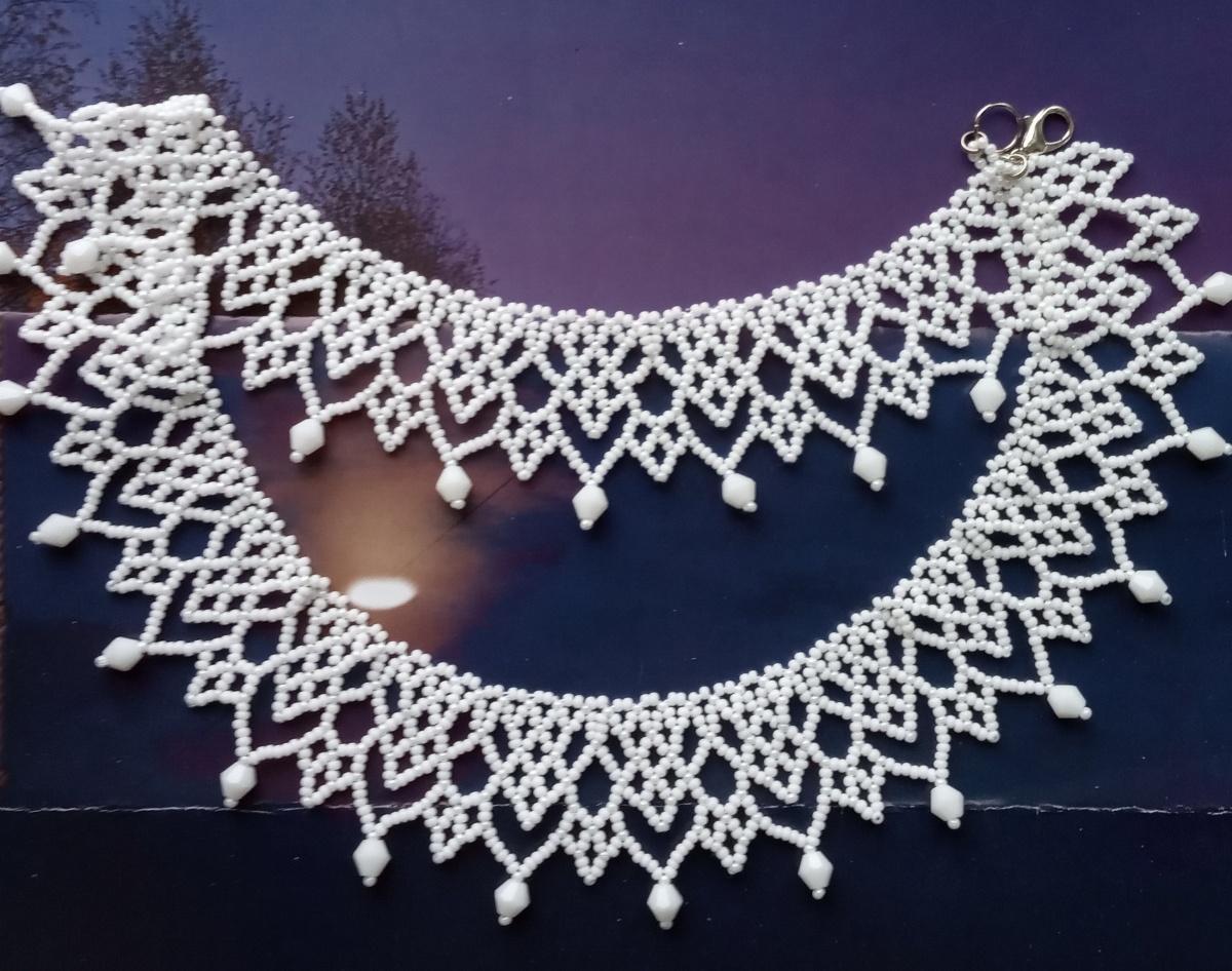 Колье (сеточка) белого цвета, графичная, пока без названия, с "компанией"