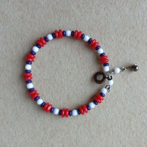 Но красных и синих осталась щепотка. Добавляла чех 10/0 белый и пластиковые бусинки в тон.