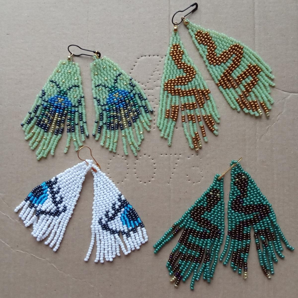 Серьги с густыми низкими: ползучие - змеи, жучок и подсматривающий глаз - двойной кирпичик