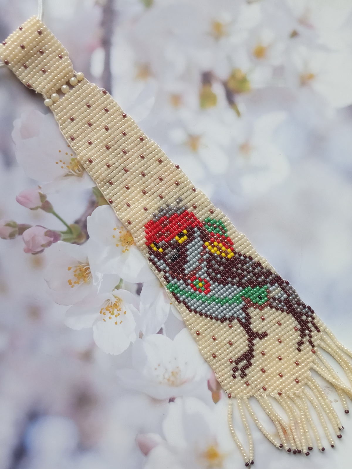 А вот фон, пожалуй, самое сложное было Чех №47113 сорт 2: он из глянцевых и не очень блестящих бисеринок — такой эффект интересный! Вспомнила про него — и решила, что надо воробья всё-таки делать