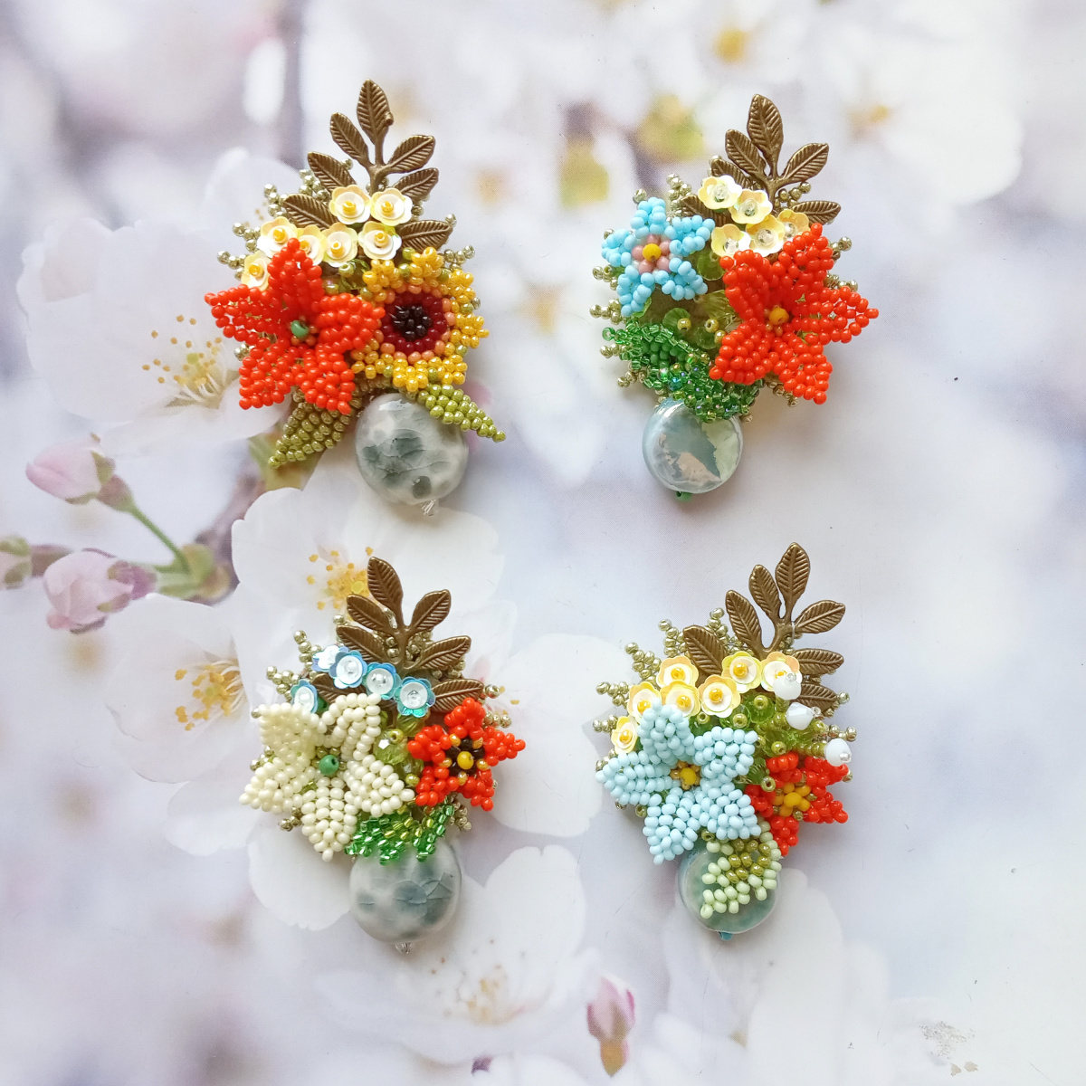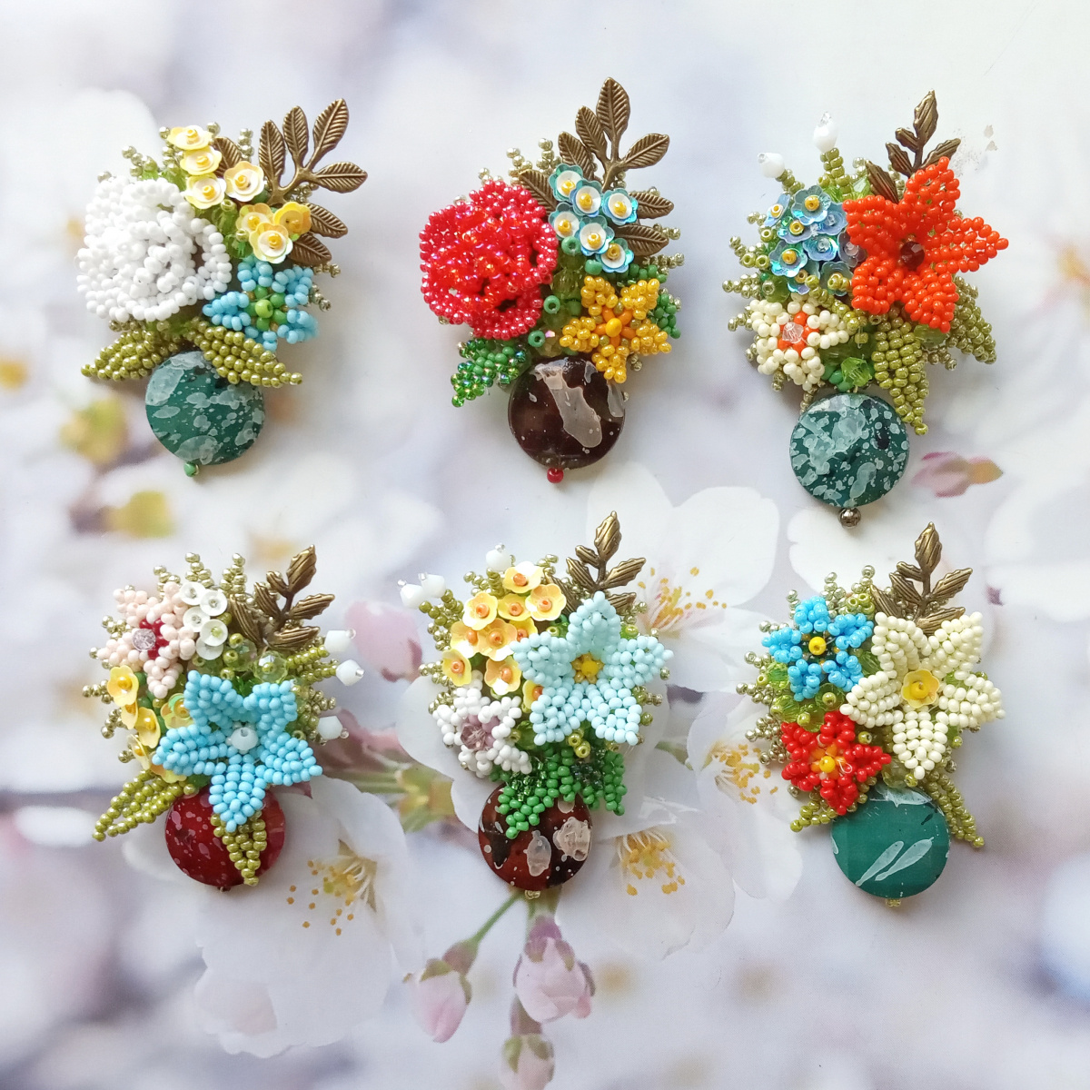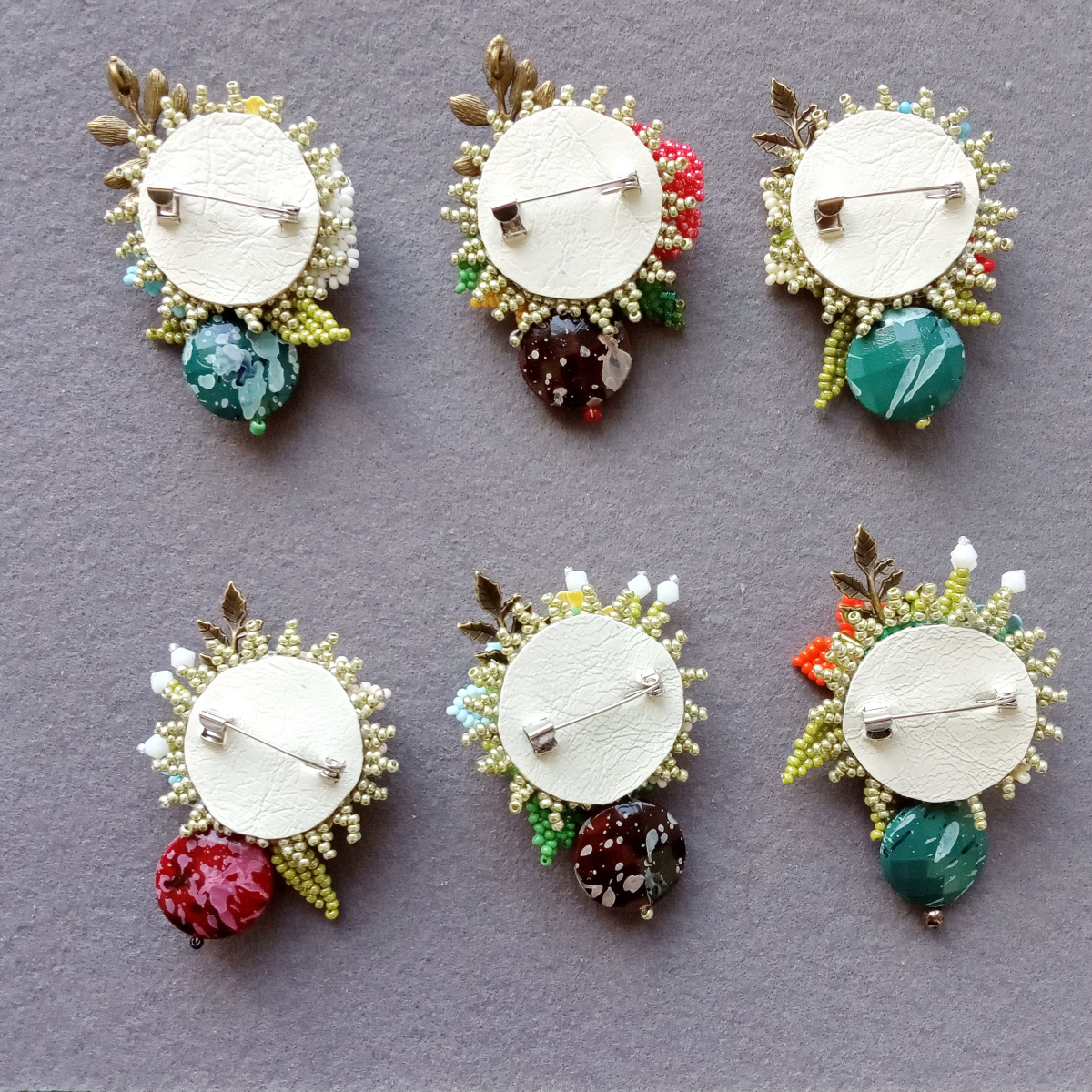 На этот раз в нескольких и завершающий ряд сразу доплетала, а то за всё нитка цепляется. Бусина на проволочке, прикручивала (с промежутком) к веточке, пришивала к основе за проволочку и веточку. Можно было, в принципе, на этом этапе и застежку пришить, но она и так капитально приклеена.