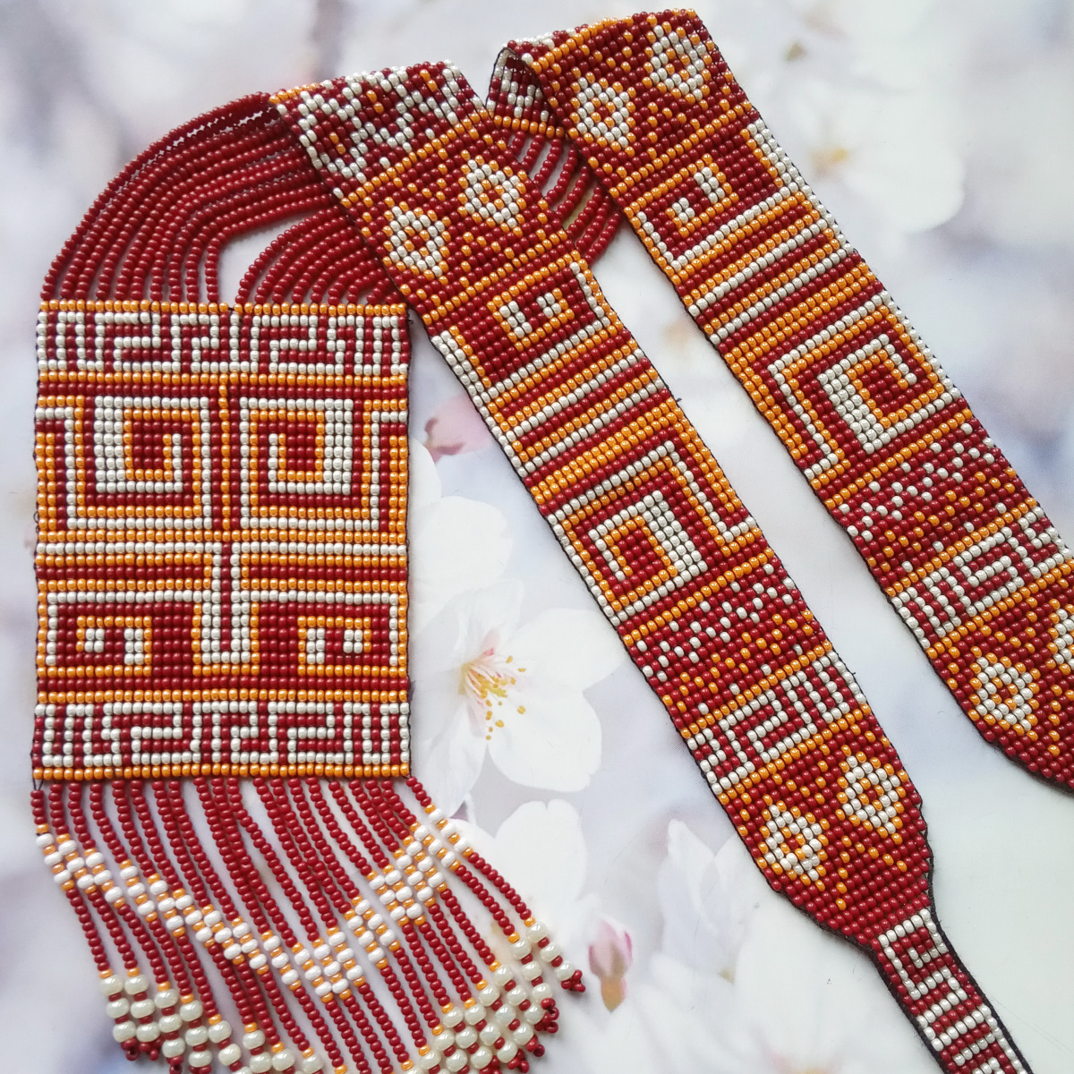 Чудесный гердан!  А простеньких герданов не бывает! (это мое личное и твердое убеждение) Будь он даже однотонным, все равно это трудоемко и долго.