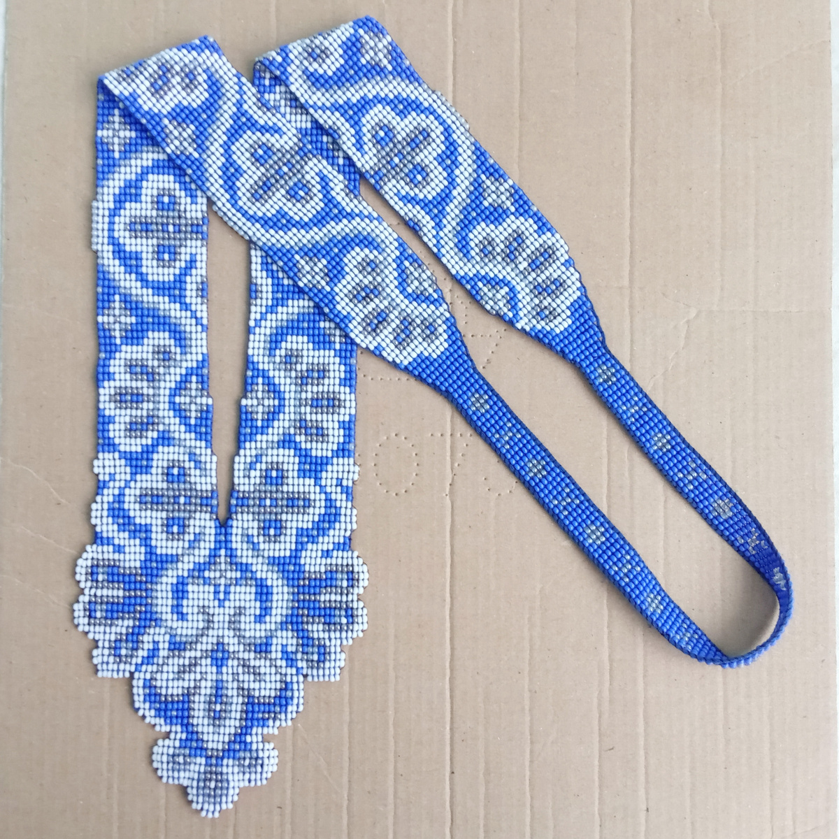 Гердан Вологодские кружева в голубом по платной схеме Маруси. Подобный был в черном цвете. Этот нежнее