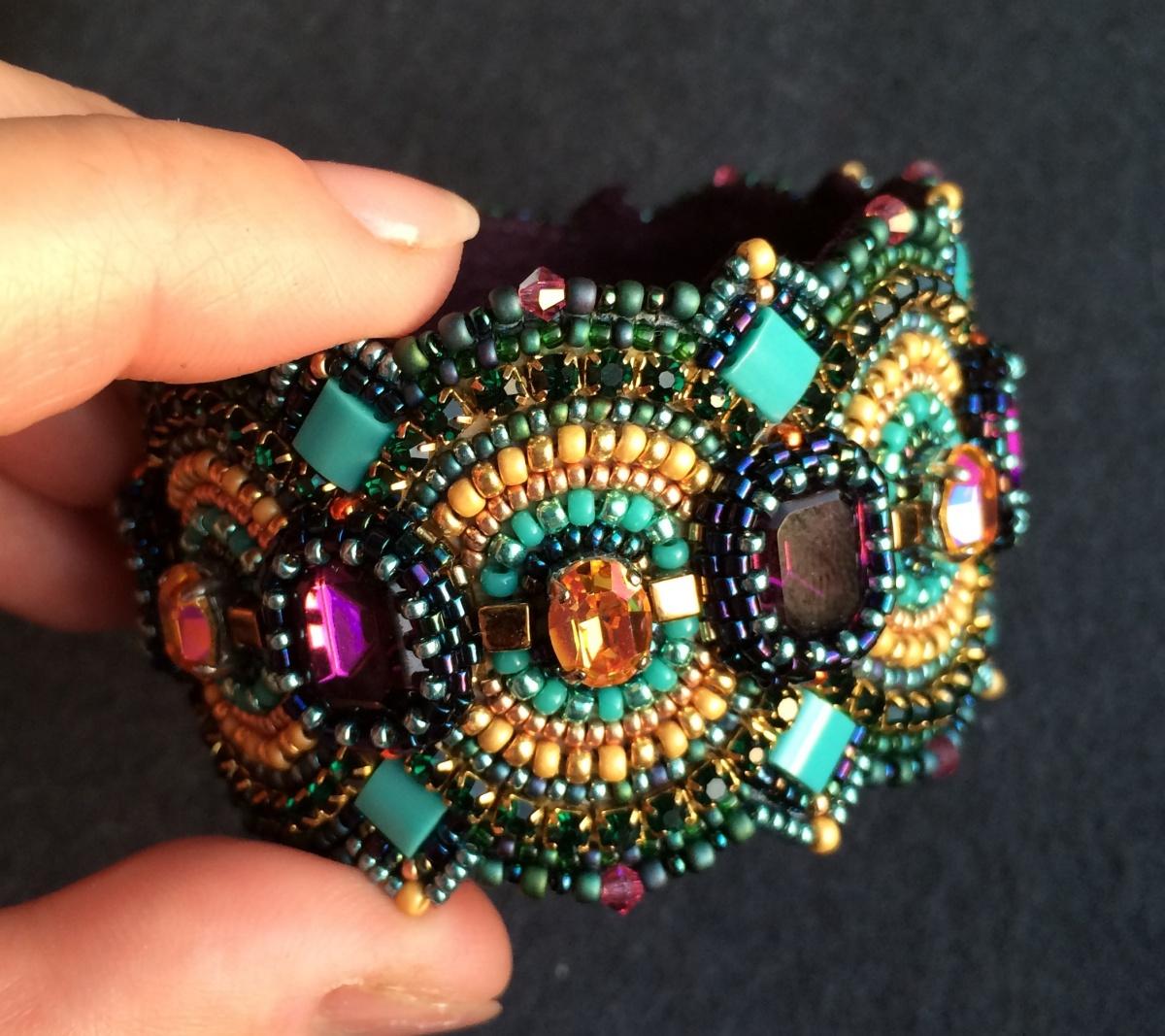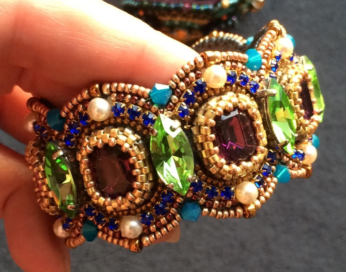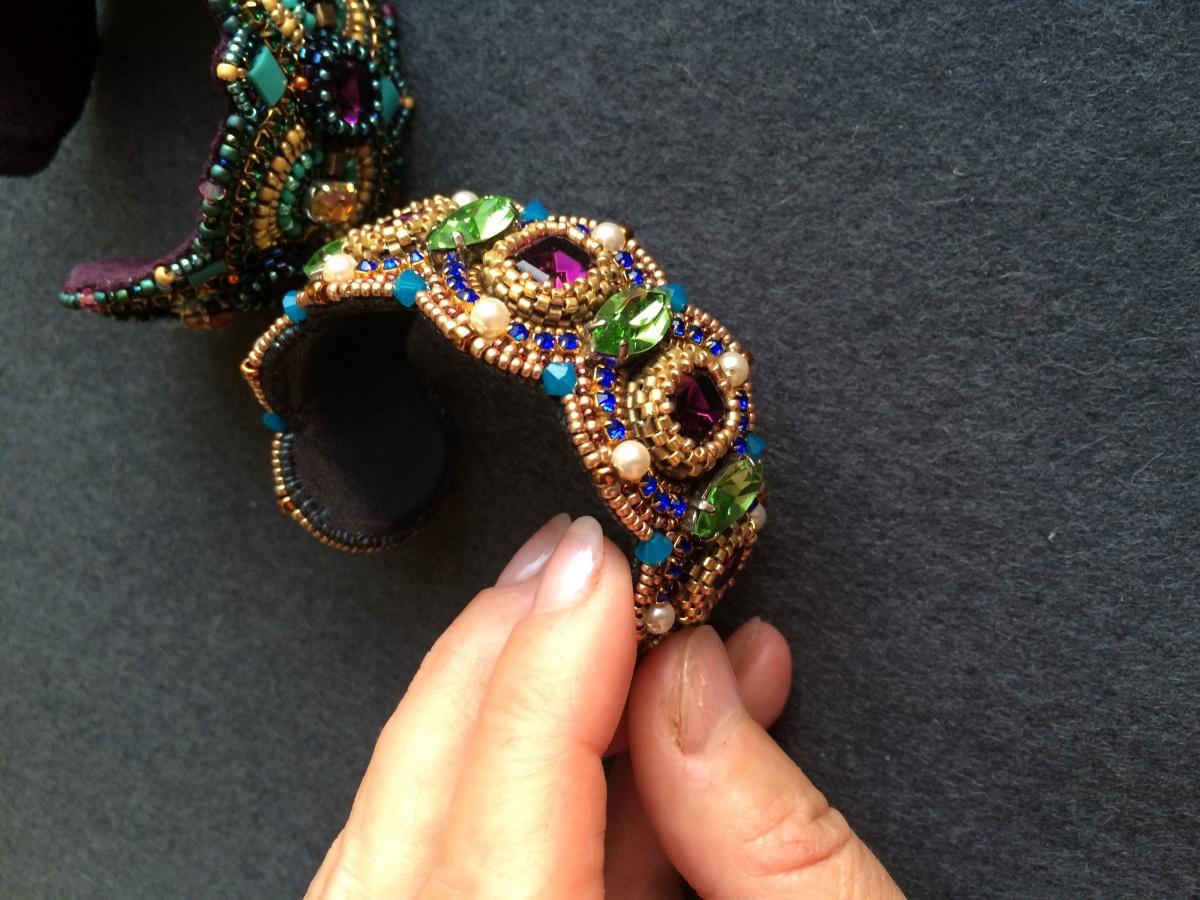 В хорошем смысле! Решила я попробовать развеселить этот унылый цвет. Сразу скажу, потерпела неудачу. Хотела сделать яркие, прямо пестрые, браслеты в восточном стиле, но моя осторожность и боязливость победили: веселой карусели цветов не получилось, все, в принципе выдержанно и спокойно по цветовой гамме, увы.