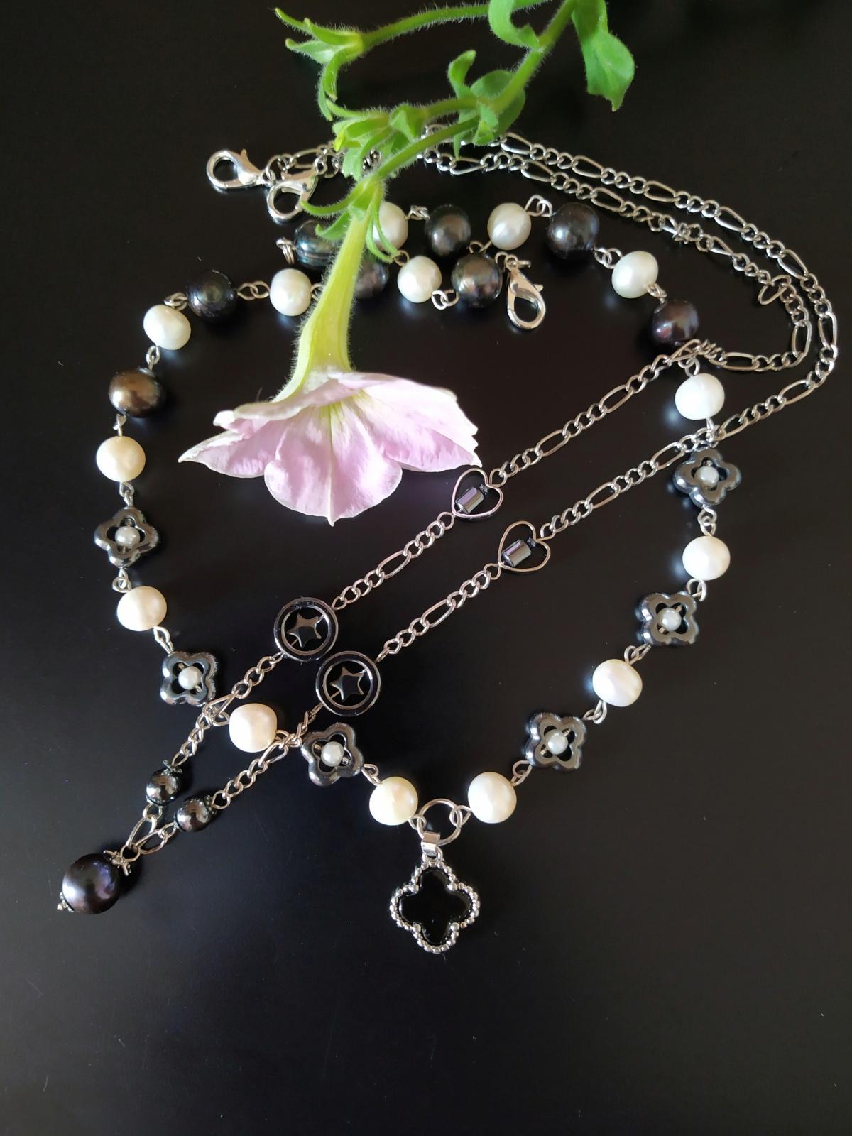 К флешмобу «Простой месяц» подходит вот такой трансформер в свете тренда этого сезона: чокер из белого и черного жемчуга и бусин гематита и кулона на цепочке. Можно носить как по отдельности, так и вместе. Да, носибельно получилось.