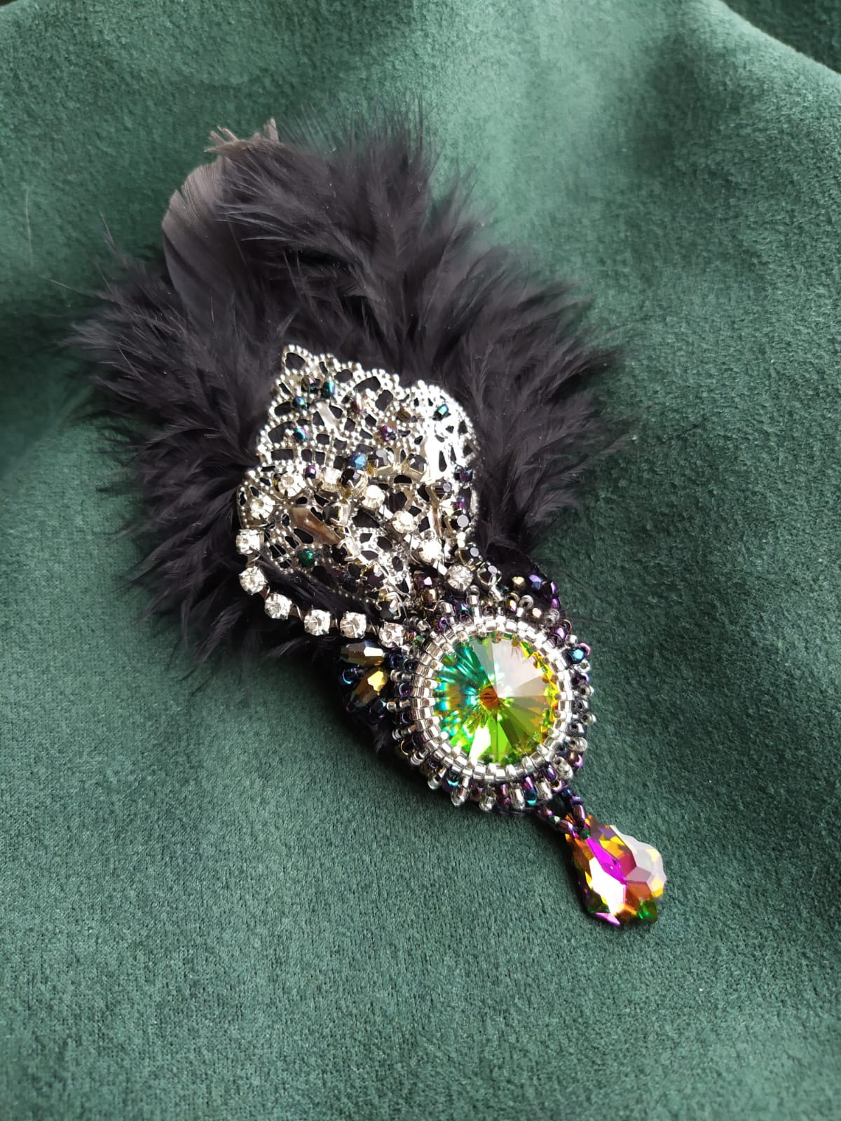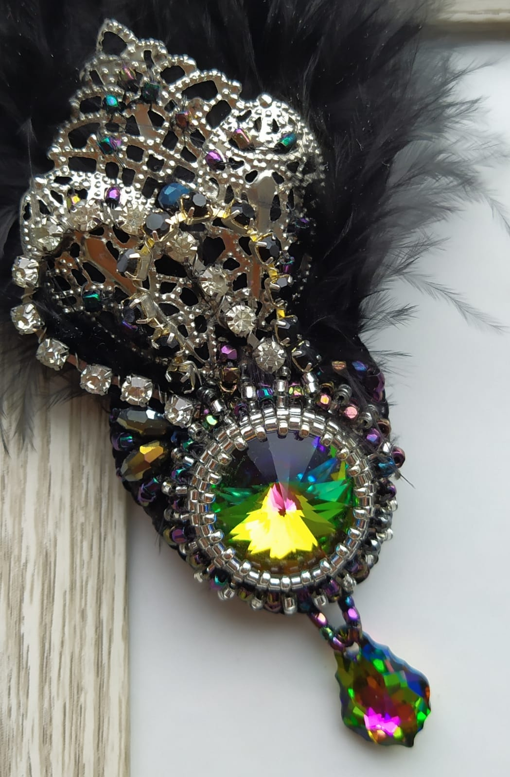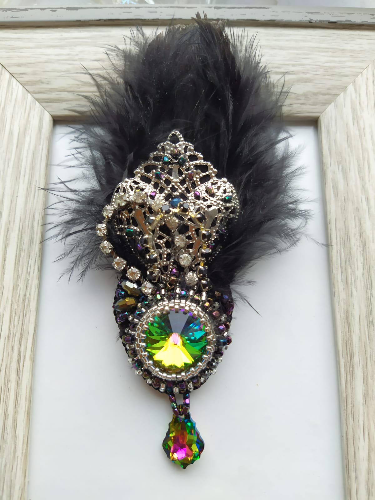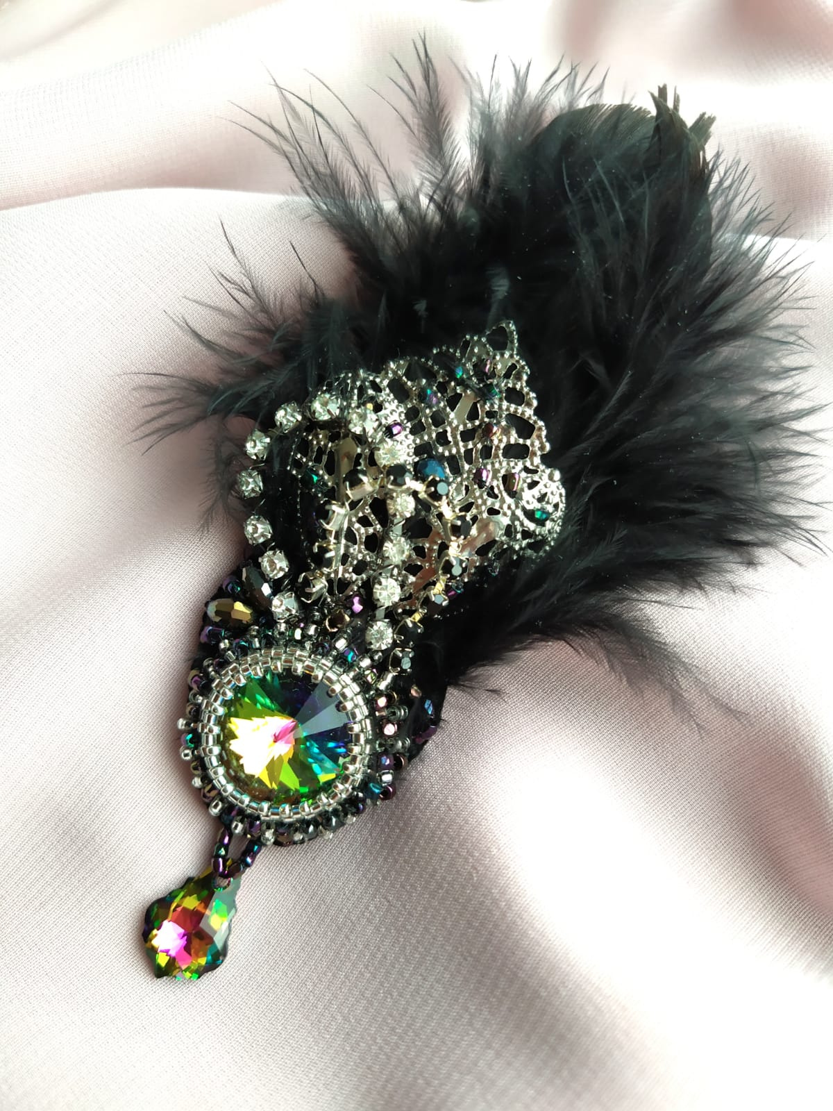 Медленно стала делать. Но как раз накануне прямо под ноги прилетело такое выразительное перо голубиное. Добавила к нему пушистиков. И наконец использовала очень красивую, но так и не нашедшую применения, филигрань.