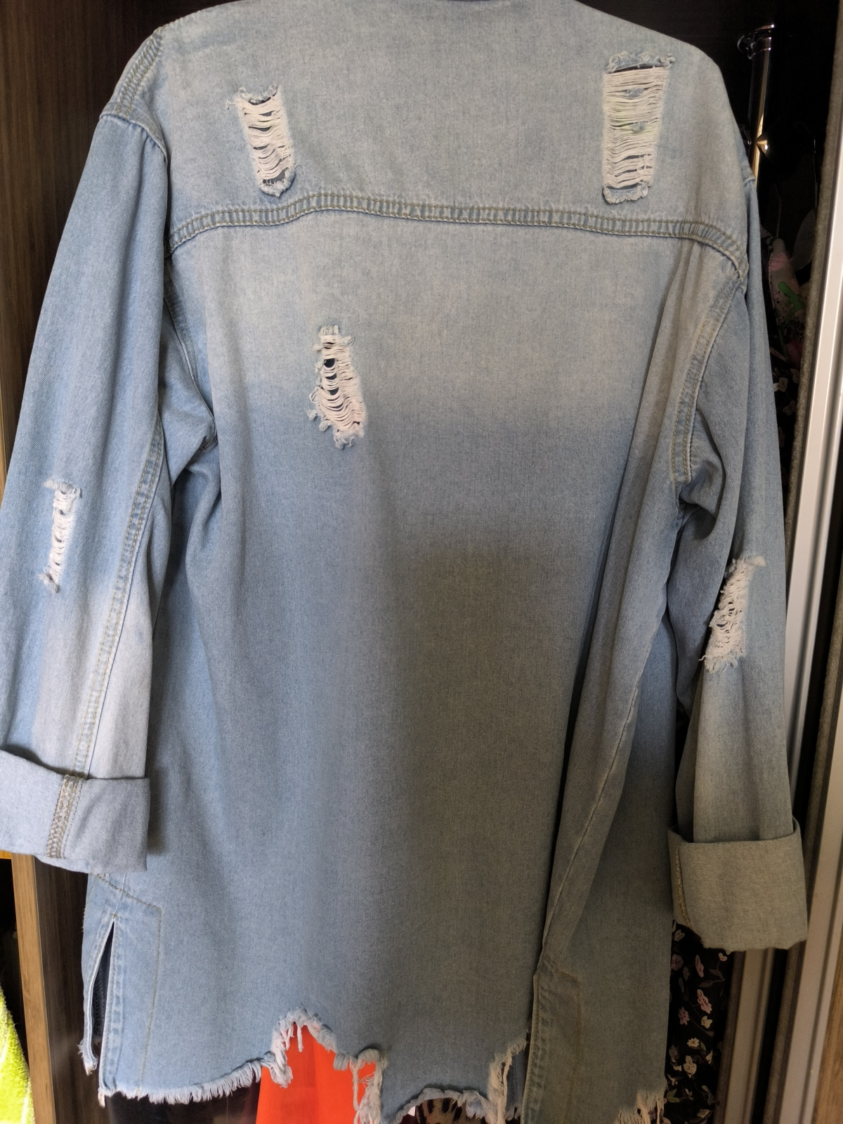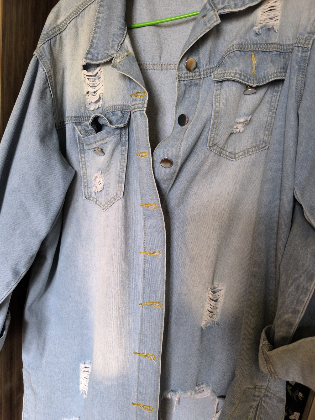 Купила год назад джинсовку рваную. Ну захотелось похулиганить. Муж плевался каждый раз как её надевала. А я даже с какой-то очаянностью её носила, хоть и не так часто.