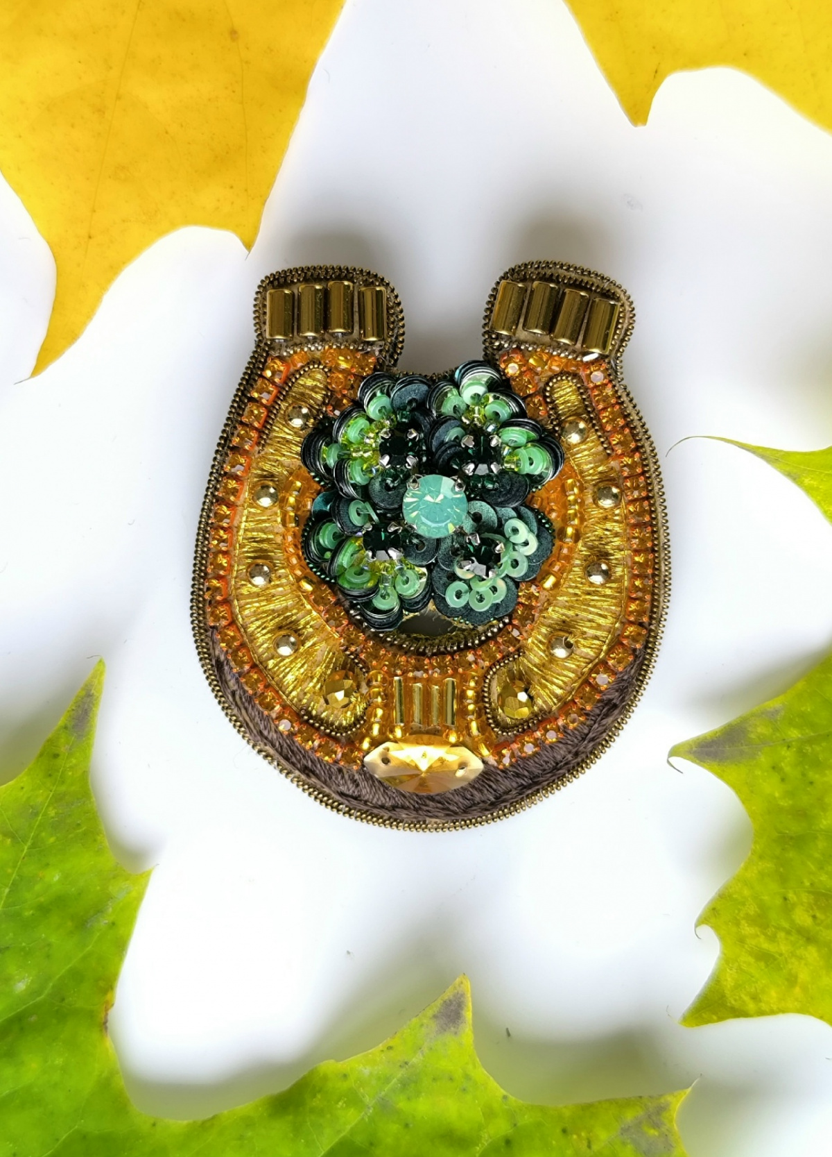 Долго думала что бы мне выбрать за символ: уж очень не хотелось ни коня, ни лошадь. С прошлого этого года ещё лежит, вроде тоже неплохая брошь. Но видать никому не нужны лошади в моём окружении. И тут пришла мысль, — подкова! Но, видно, не одна я также мыслю. Тут и МК Оксаны Диваковой и Натальи Скитской подоспел «Счастливая подкова».