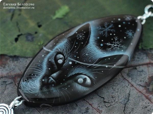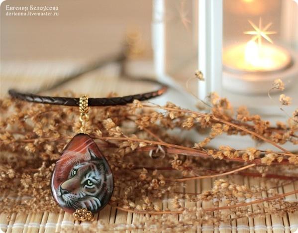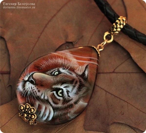 Роспись на агате, шнур из натуральной кожи, позолоченная фурнитура (с покрытием 18к и 22к).