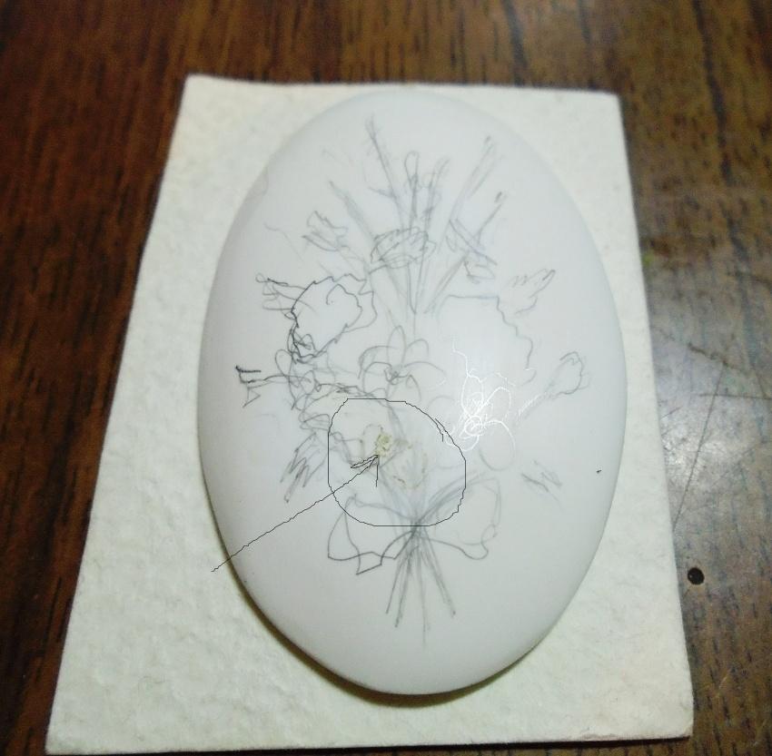 Ну вот, решила показать, как рождаются мои кабошончики. Поскольку красивые камни портить росписью я пока боюсь, то покупаю на распродаже невнятные камушки с брачком, которые не жалко закрыть росписью. Итак, имеем кахолонг с грязноватыми пятнами в породе, который в первозданном виде в украшении не используешь.