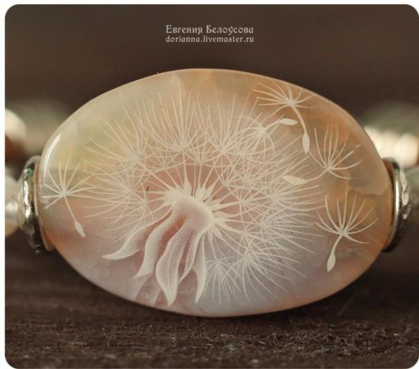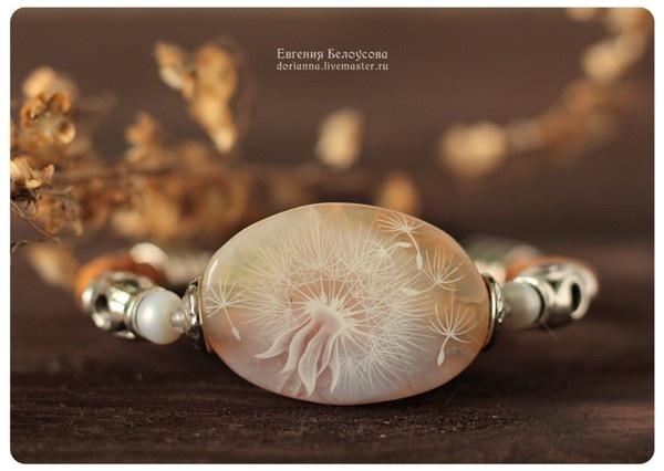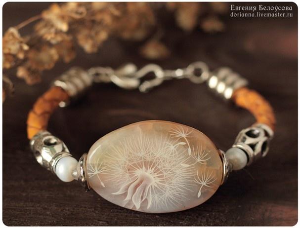 Роспись на агате, шнуры из натуральной кожи, авторская фурнитура Анны Черных, стеклянные бусины.