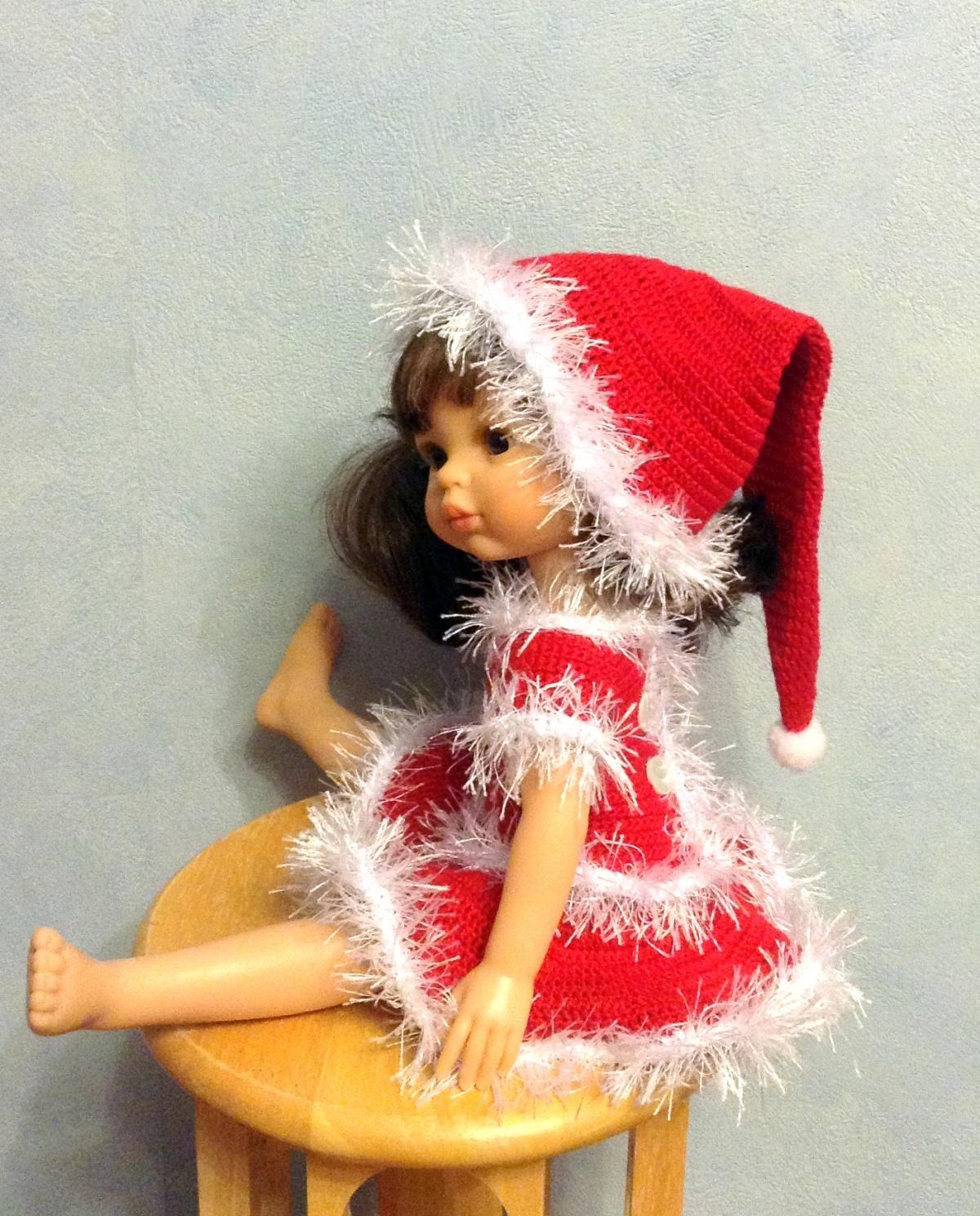 Вязаное платье и костюм помощницы Санты, колготки пока еще вяжутся и в плане свалять валеночки.