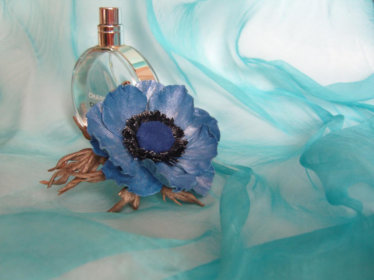 Захотелось сделать анемону, вот такая брошь получилась.Кожа тонюсенькая, итальянская, как же с ней приятно работать.По весу наверное меньше 5 г получилась, хотя диаметр цветка 7см.
