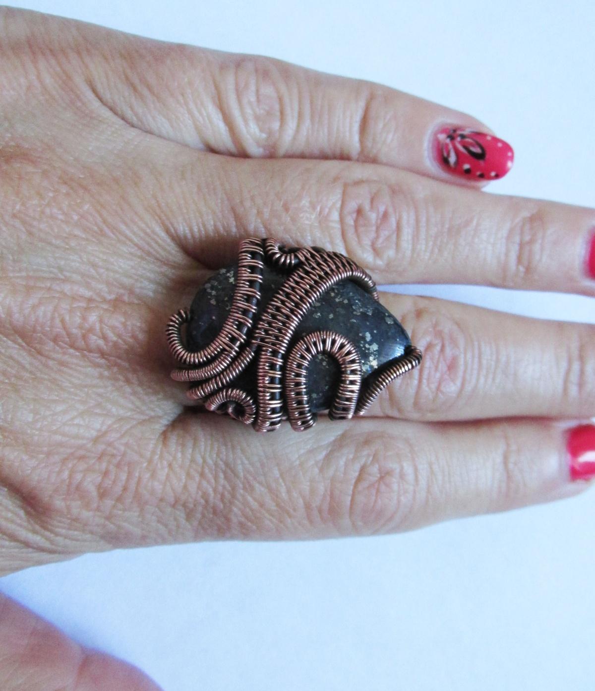 и кольцо. Фотала на себе, но мне оно на 3 размера большое, поэтому не очень понятно