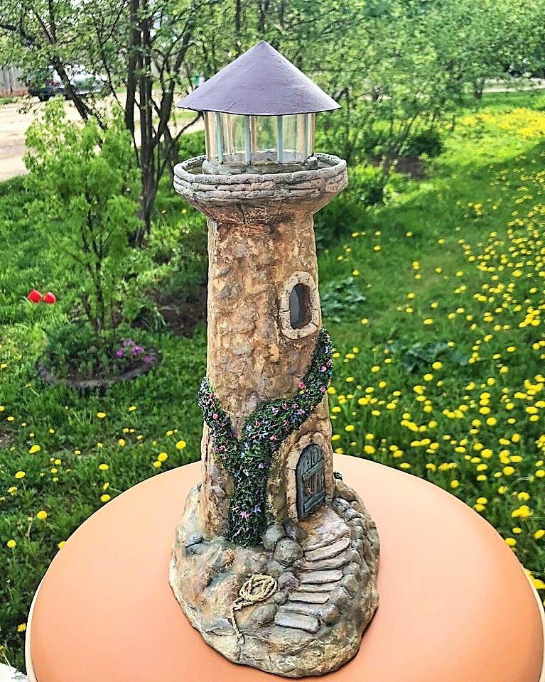 Весна — время перемен! Потянуло меня на строительство. «Построила» маяк высотой около 30 см практически из ничего. Картон, папье-маше, акриловые краски… Внутри гирлянда на батарейках, так что он ещё и светит. Теперь в спальне ночью не заблудишься
