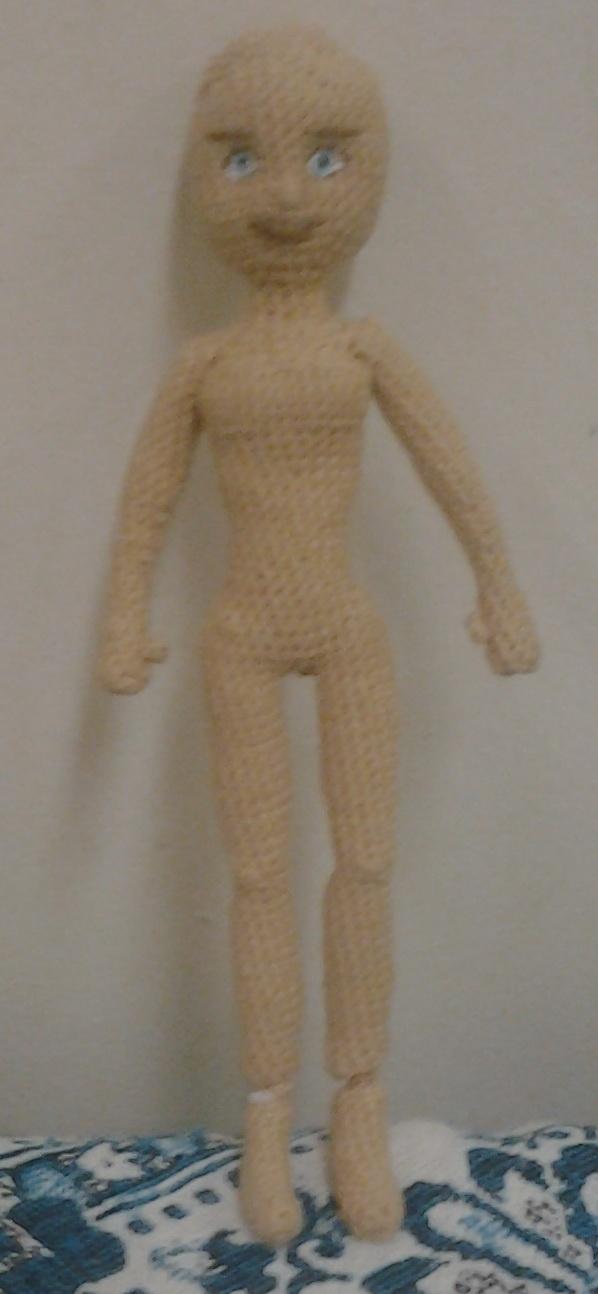 Вот такая куколка у меня связалась в 2018 году, ждёт когда я ей одёжку сделаю. Вот выйду с отпуска, и на работе по вечерам буду вязать ей одёжку. А пока голыш к игрушечному флешмобу.