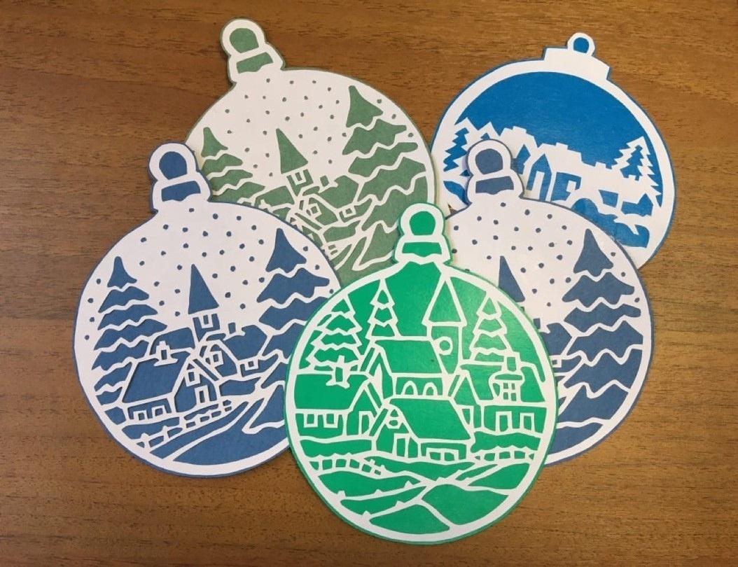 В прошлом году повырезала парочку шариков и снежинок на работе, а потом прилепила на окно. Красиво смотрелись, особенно веччером, когда на улице темень. Надо найти старые распечатки: из 15-20 выкроек осилила всего пяток