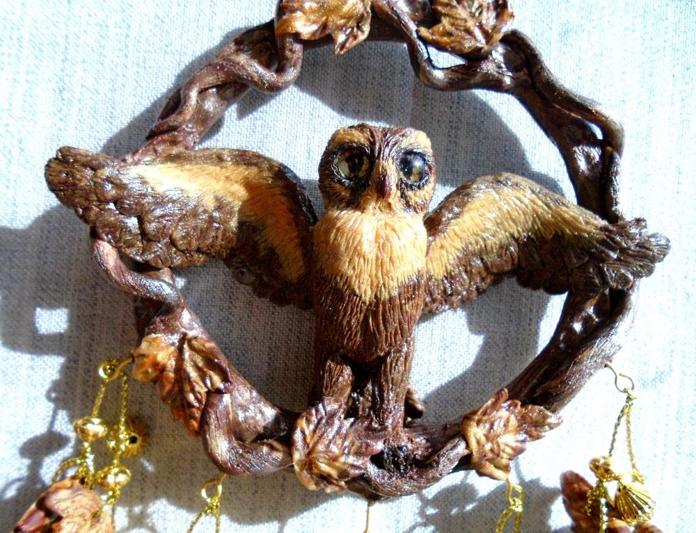 Ещё одна сова  . На этот раз не ловец снов, просто подвеска. Полимерная глина, металлические бусины, глазки стеклянные с Алиэкспресс