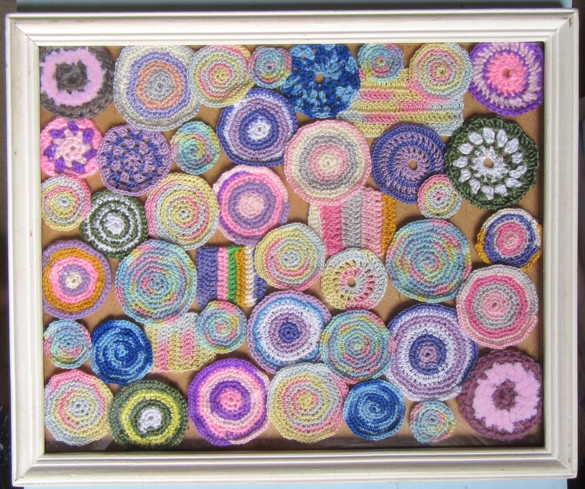 Давненько у меня была задумка сделать панно из миниатюрных «деревенских» ковриков. Подруге для садового домика. Научилась вязать крючком быстро, сказался опыт в бисерных жгутиках.