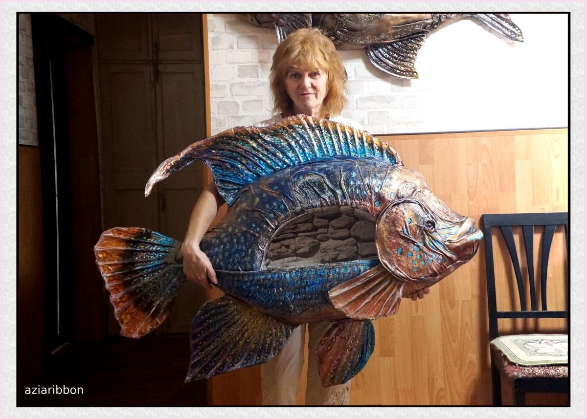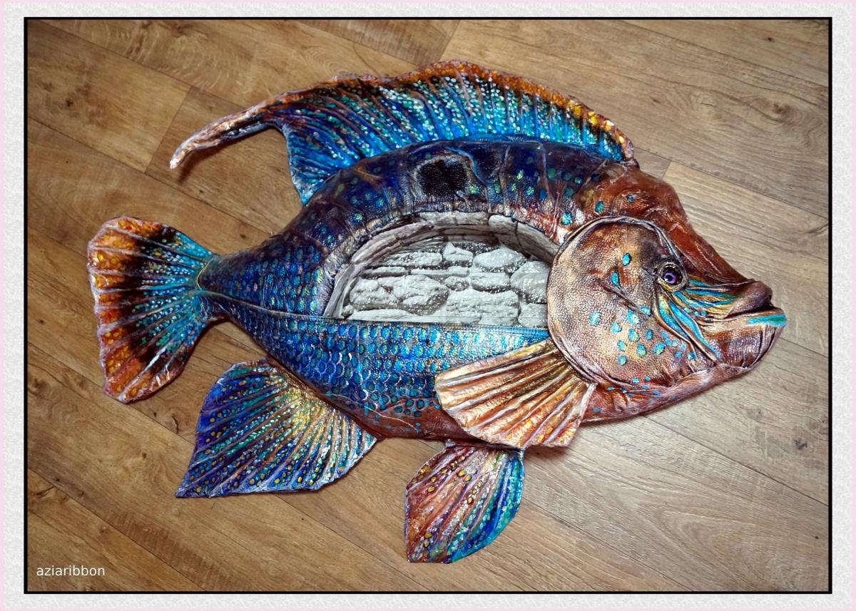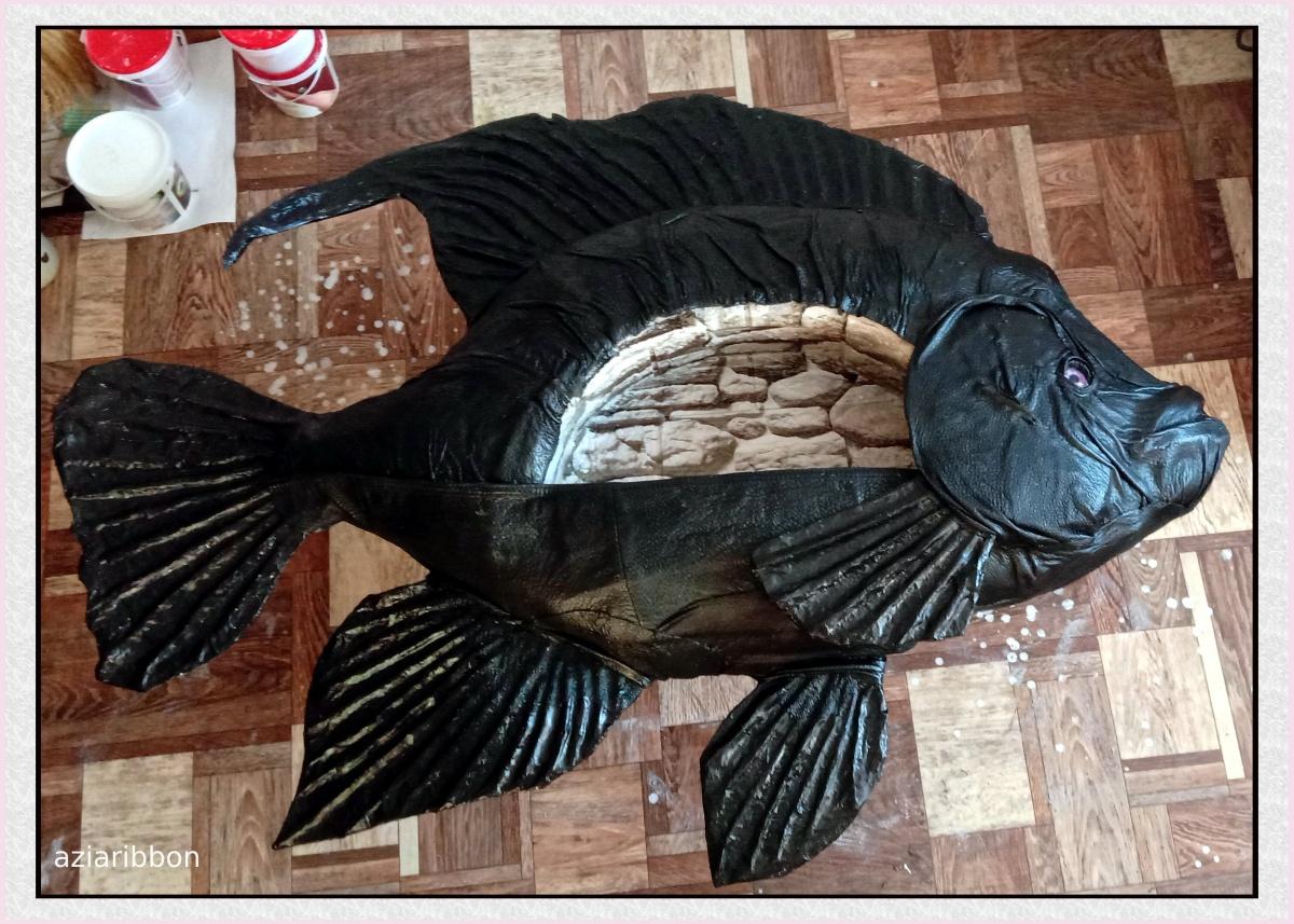 Марина, так у тебя руки из нужного места растут! Сделай сама, это же всё доступно — картонные коробки, клей, акриловые краски. Если нет старой кожаной вещи, которую не жалко на рыбью шкуру потратить, можно побольше слоев бумаги наклеить, как папье-маше, да загрунтовать многослойно, а потом и раскрасить. Будет тоже крепко и надежно держаться!